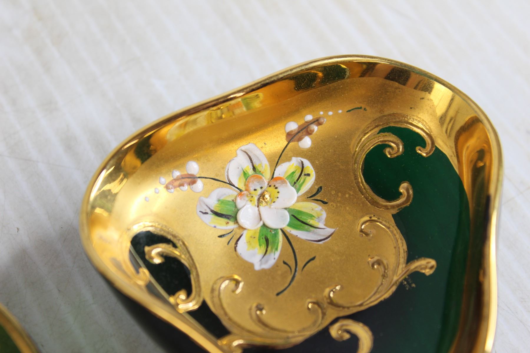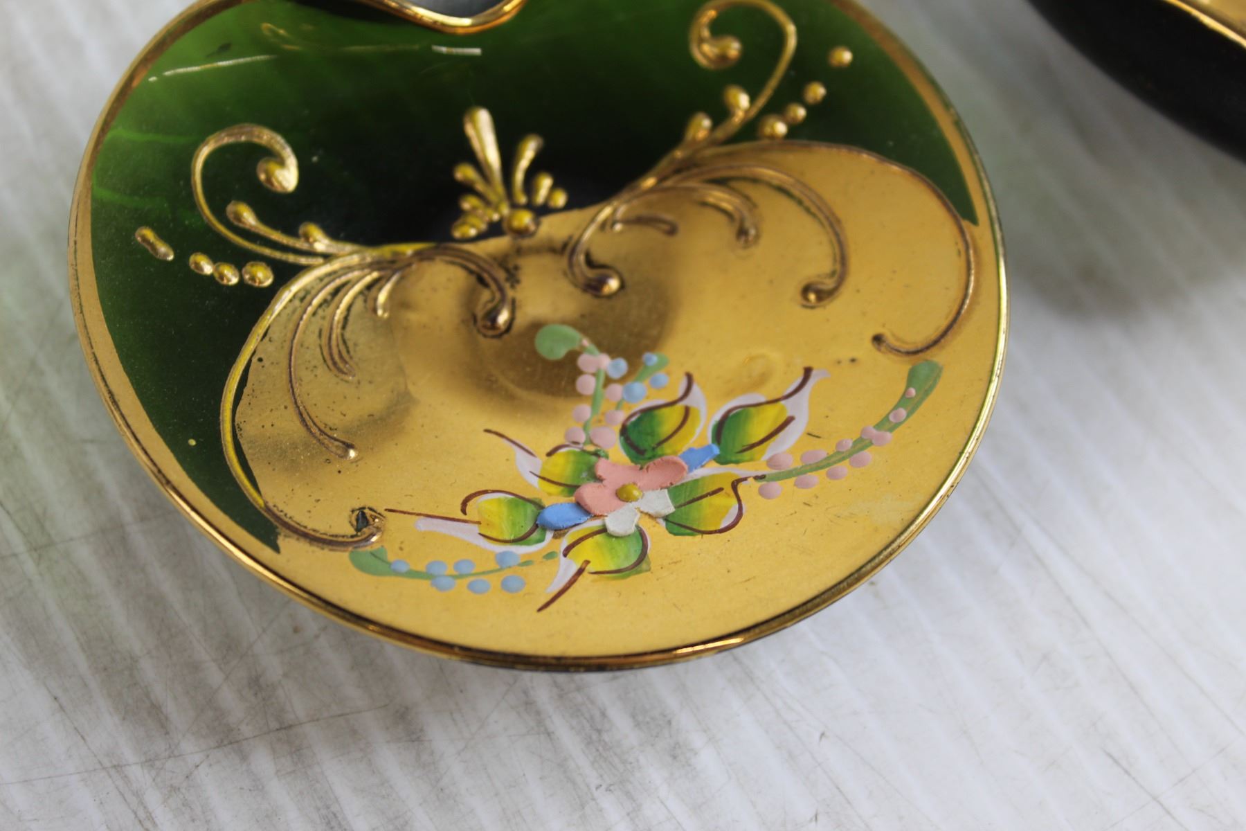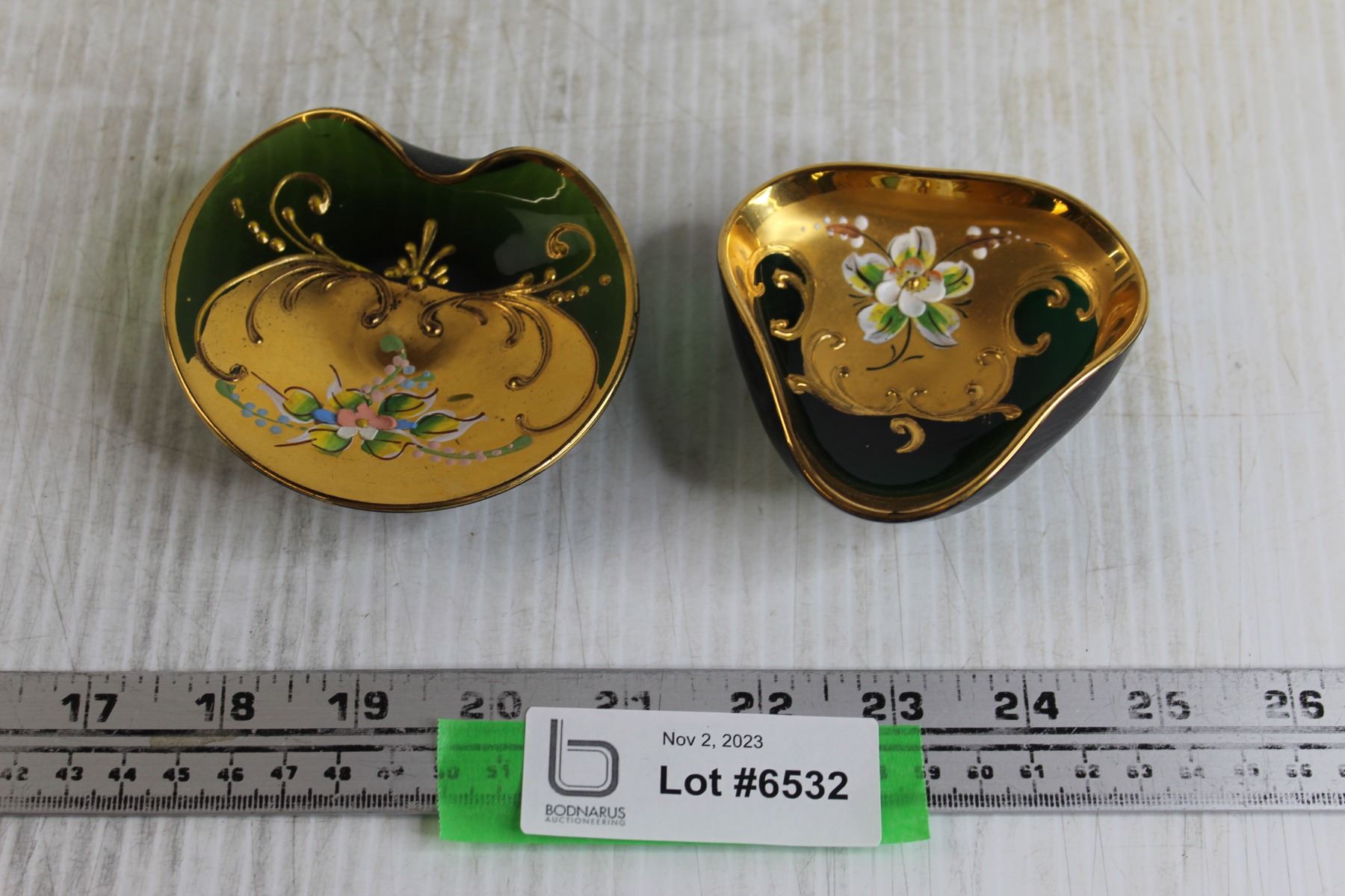 (2) Hand-Painted Green Trinket Dish - ~3  x 3