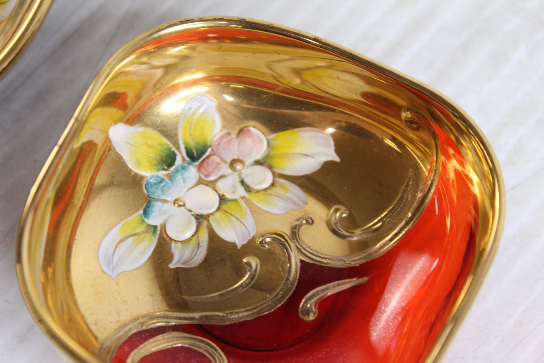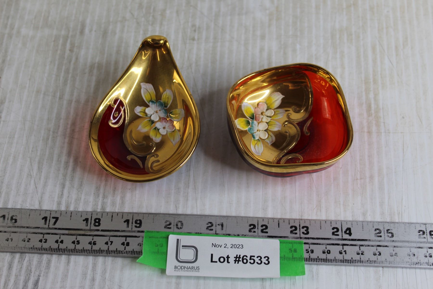 (2) Hand-Painted Red Trinket Dish - ~3" x 3"