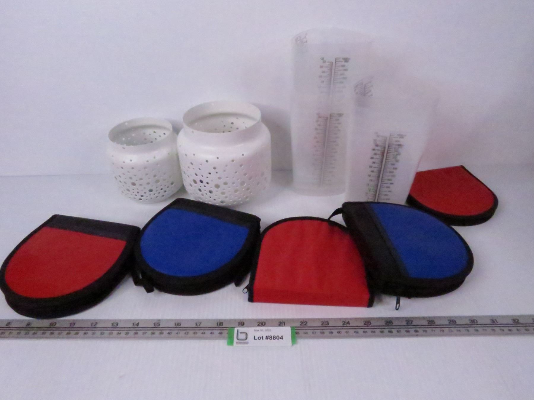 (2) Hanging Metal Candle Holders - (5) CD Cases - Measuring Containers