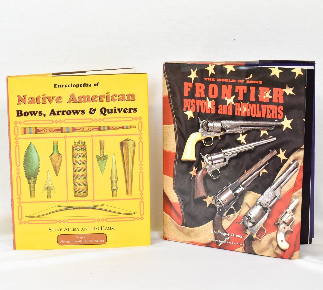 2 Reference Books, Native American interest, includes 1. The World of Arms Frontier Pistols and Revolvers by Dominique Venner with Philippe Fossat and Rudy Holst, hardback book in original book jacket, c. 1996, 1st Edition English Language Edition, Chartwell Book 2. Encyclopedia of Native American Bows, Arrows & Quivers (Volume 1 Northeast, Southeast, and Midwest) by Steve Allely and Jim Hamm, c. 1999 The Lyons Press, hardback book, nice clean pages, in original book jacket