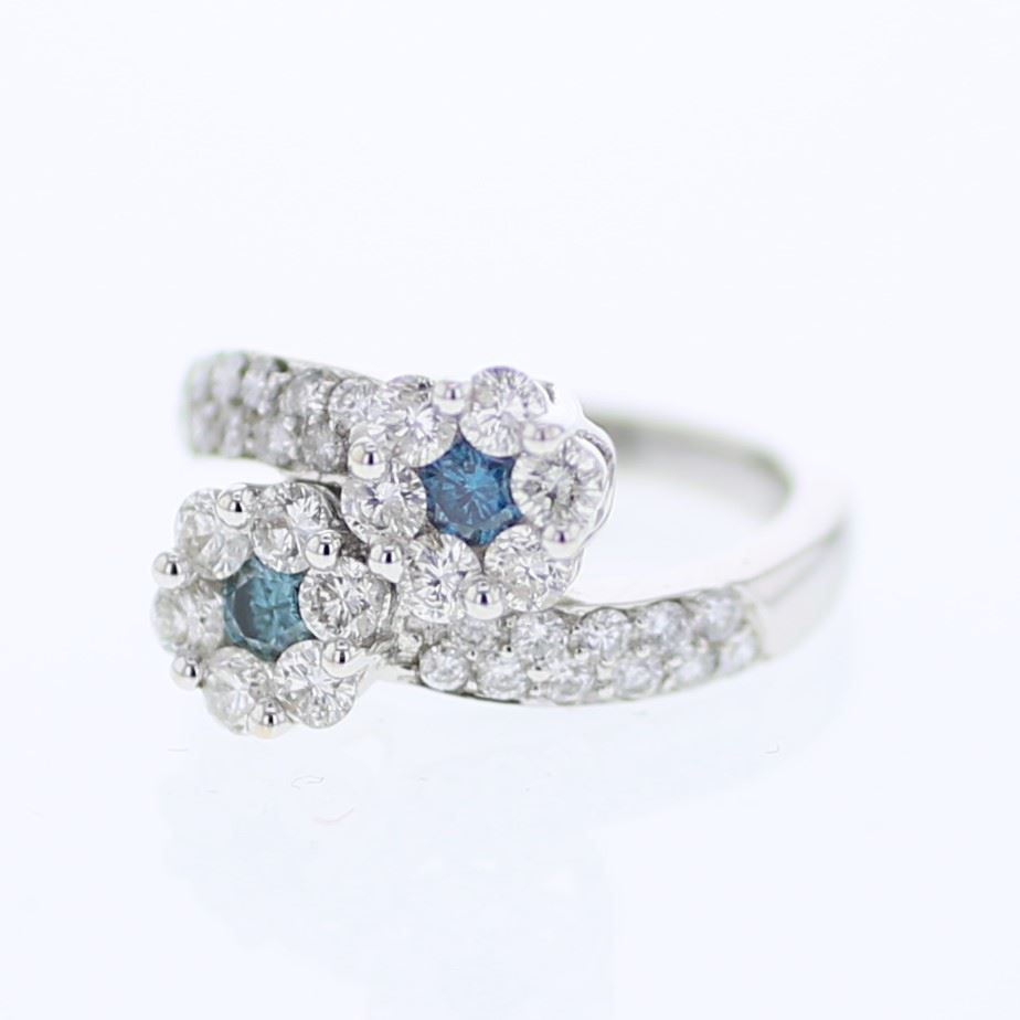 2-Head Cluster Diamond Ring in 14K White Gold