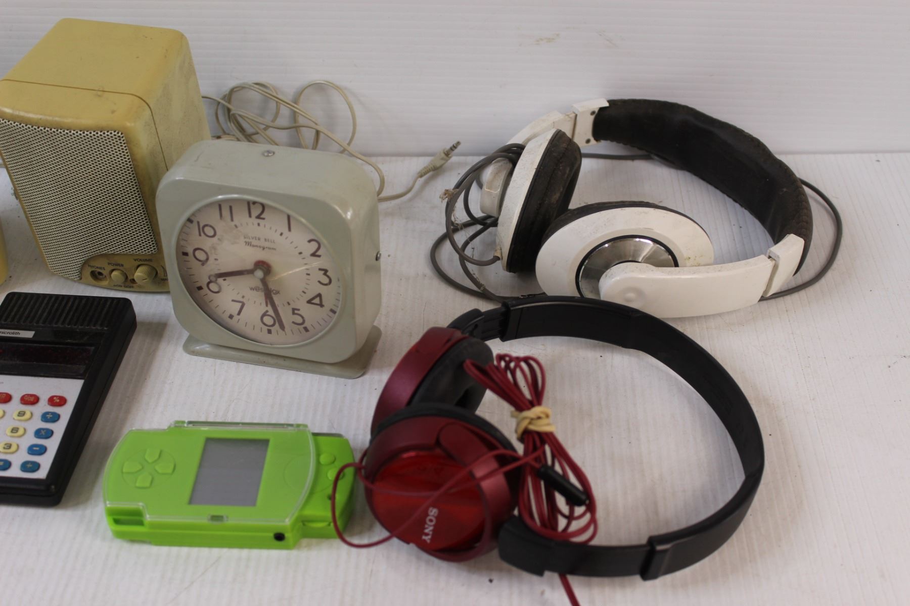 (2) Headphones, Clock, Computer Speakers, Misc. (As Is)