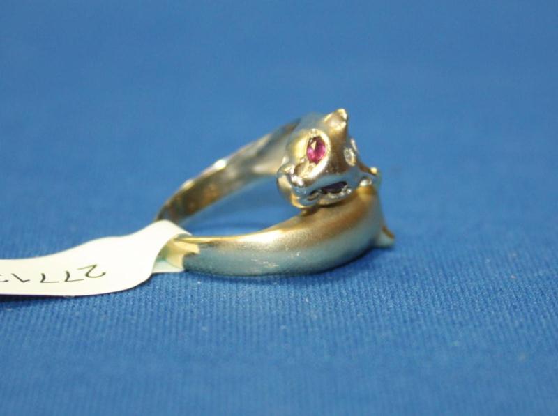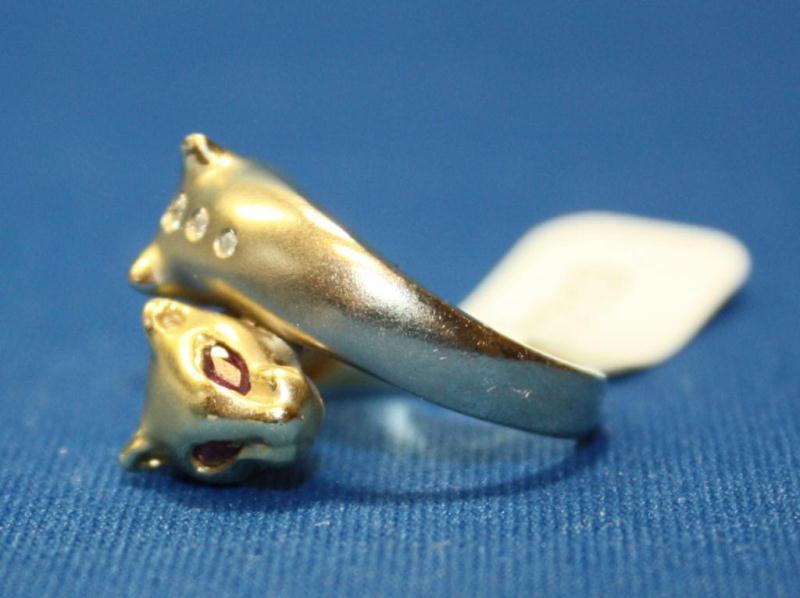 Total Retail $3,950 14Kt Yellow & White Gold -- (#1) Retail Value $3,950 14Kt Yellow & White Gold -- 2 Heads Panther Diamond & Ruby Ladies Ring