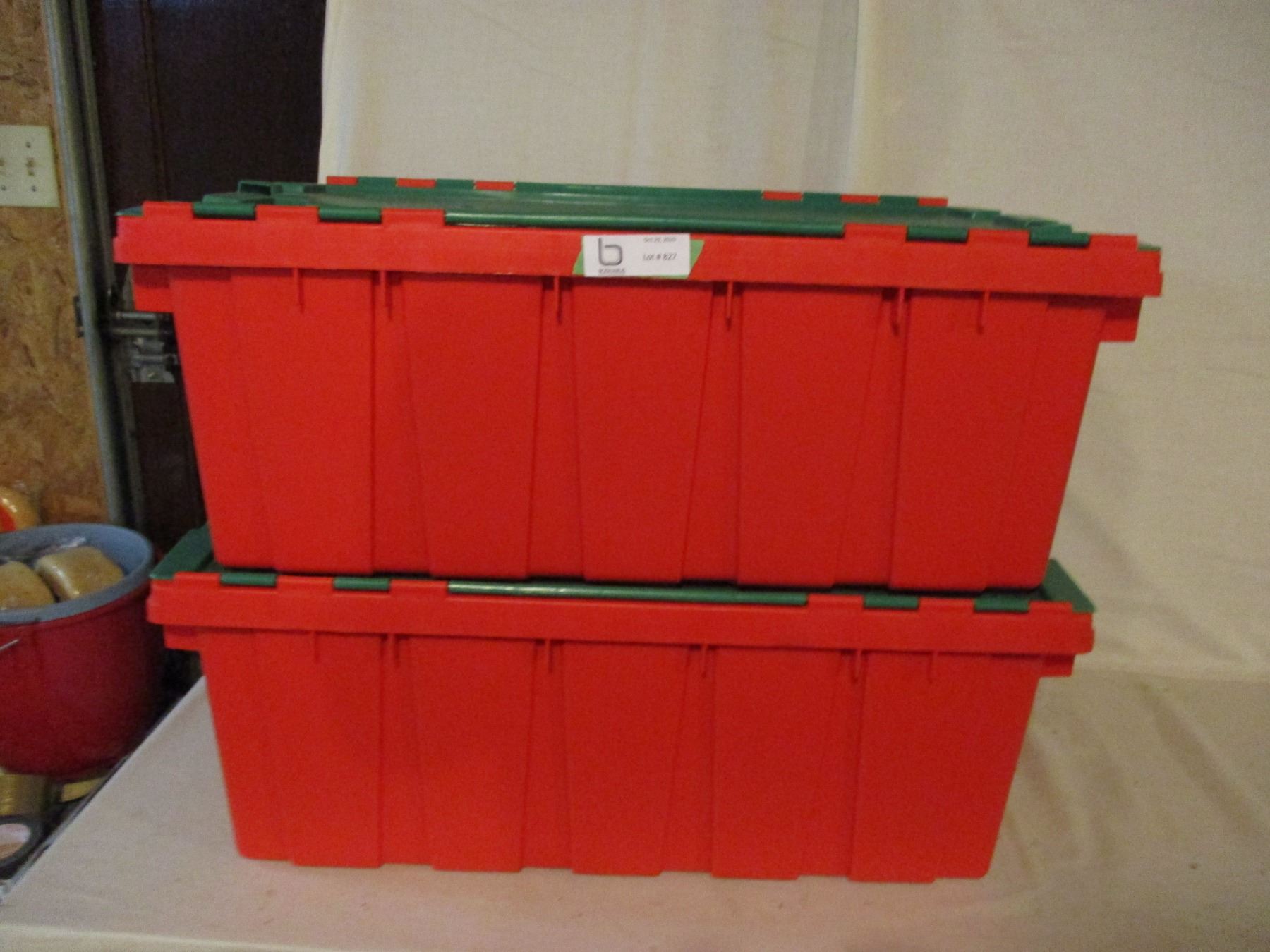 2 Heavy Duty Plastic Containers with Lids Red and Green