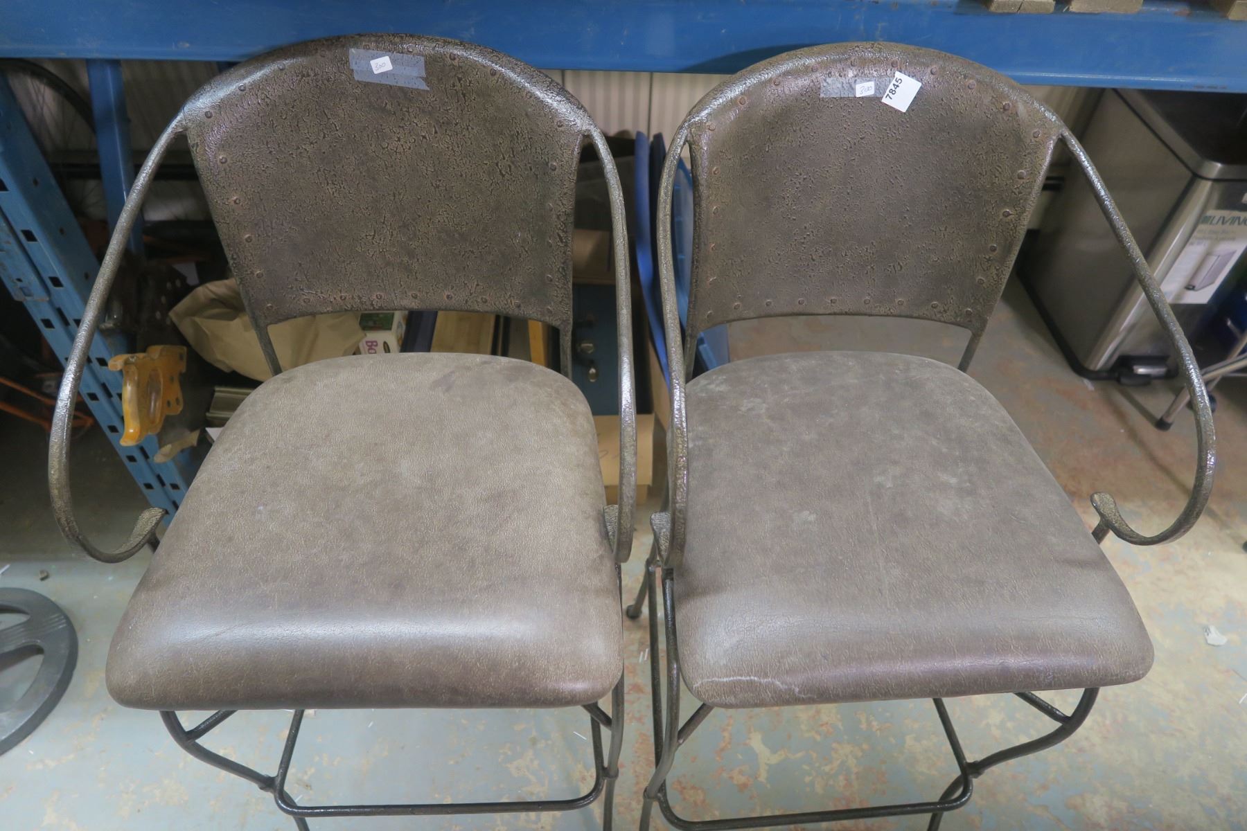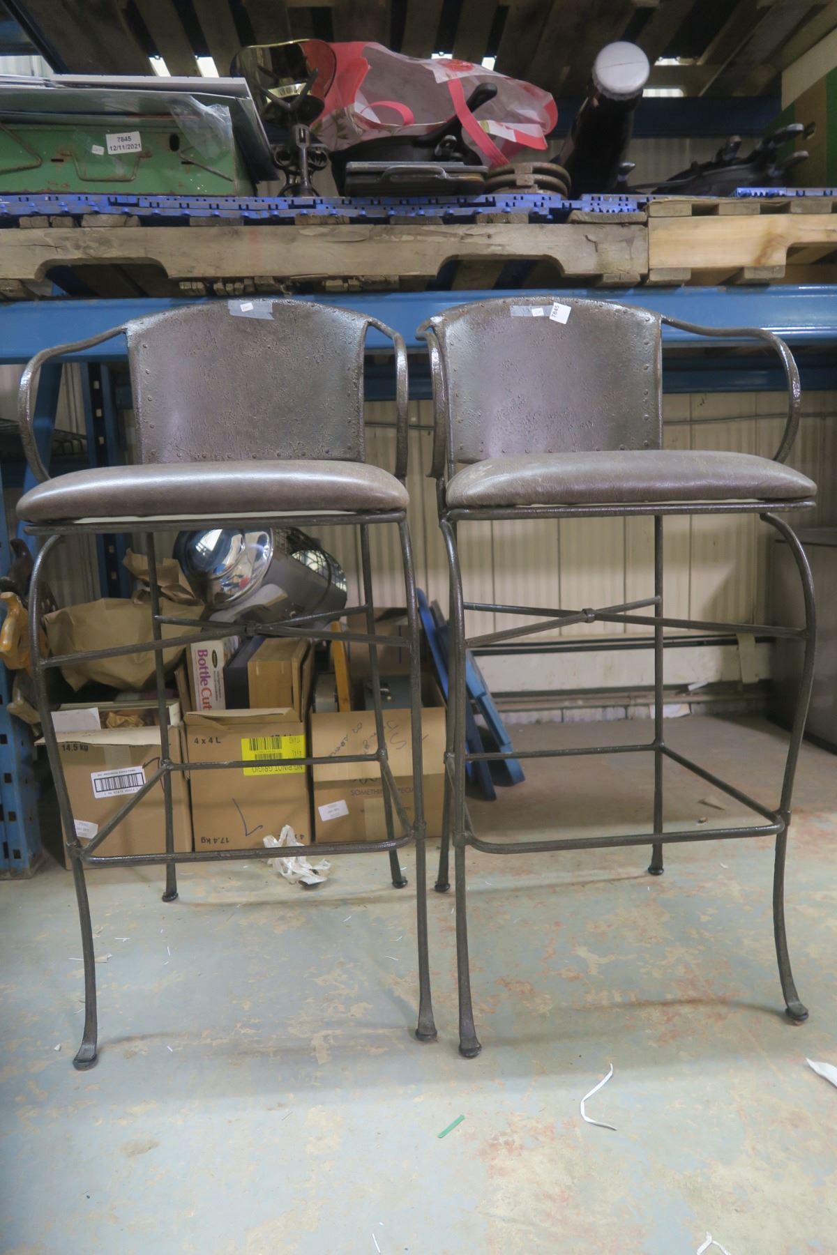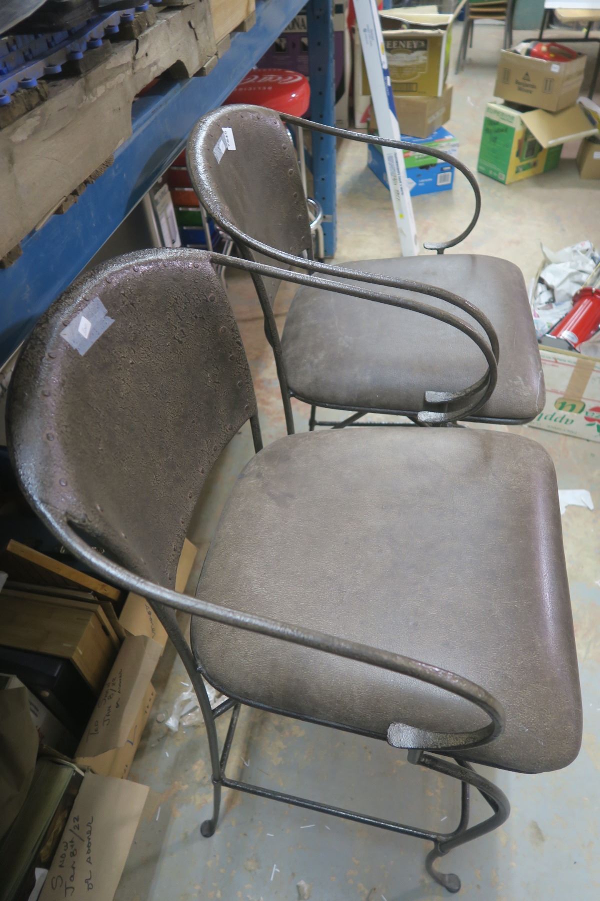 2 Heavy Iron + Leather Counter / Bar Stools, Beautiful Chairs 28" seat height