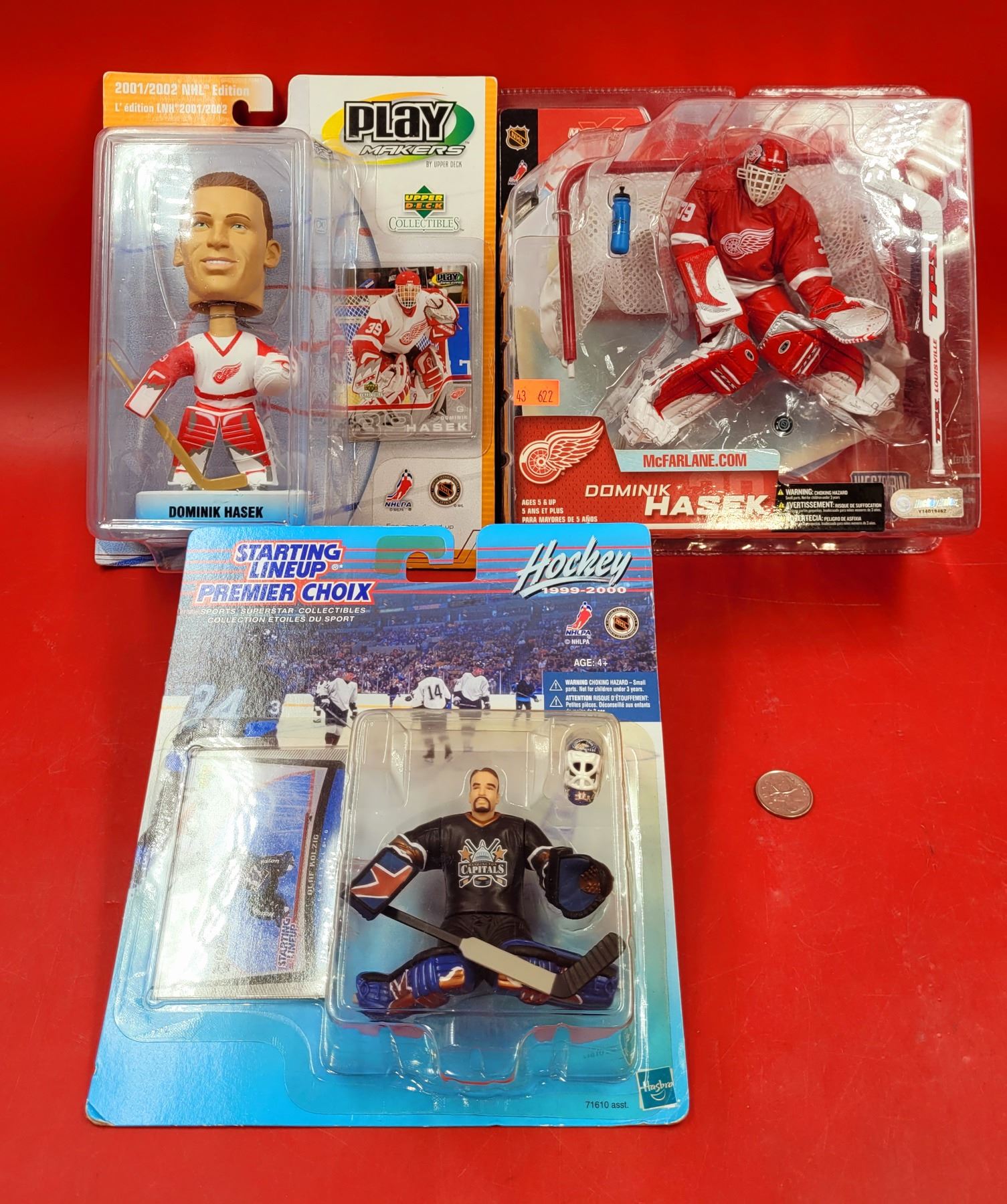 2 Hockey Figures (Hasek & Kolzig) & Dominik Hasek Bobble Head