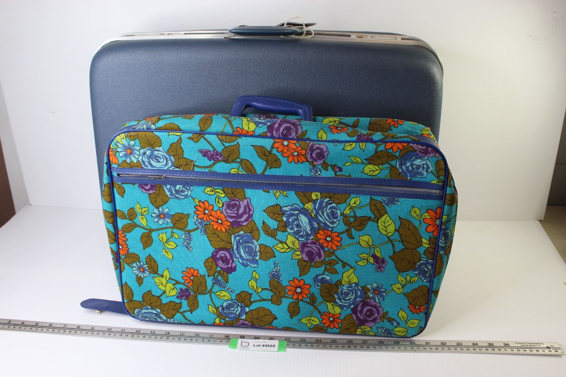 (2) Holiday Hard Shell Suitcase - Flowered Canvas Suitcase