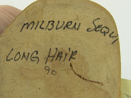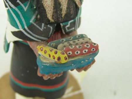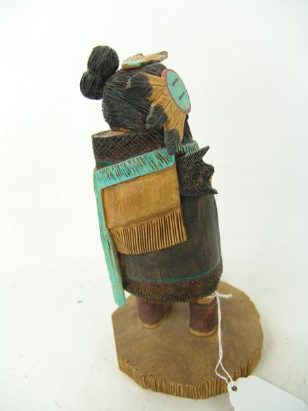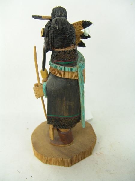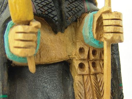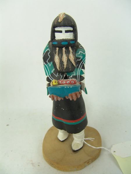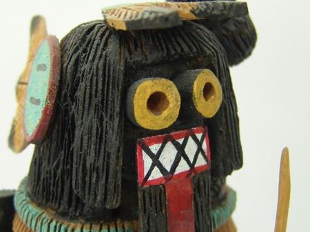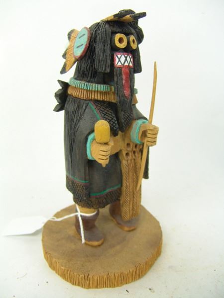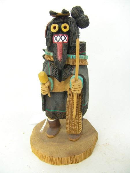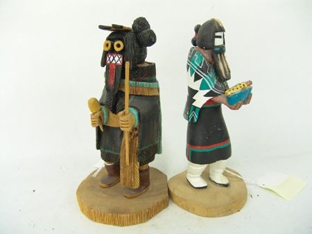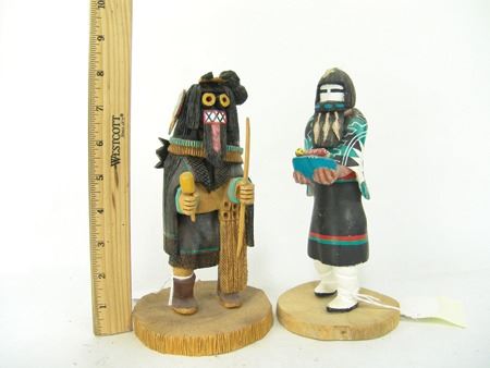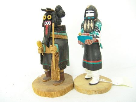 Late 1900s, Pair of hand carved and painted cottonwood root dolls, the smaller a Longhair by Milburn Sequl, the taller a Black Ogre by Frank Lomavinia. Both in good condition, minor repairs. Taller 8"