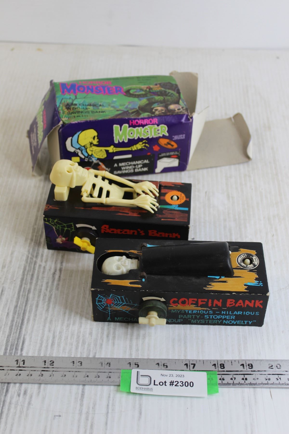 (2) Horror Monster Mechanical Wind-Up Savings Banks - Works