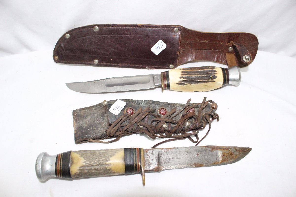2 Hunting Knives with Leather Sheaths 1 from England 1 from Germany