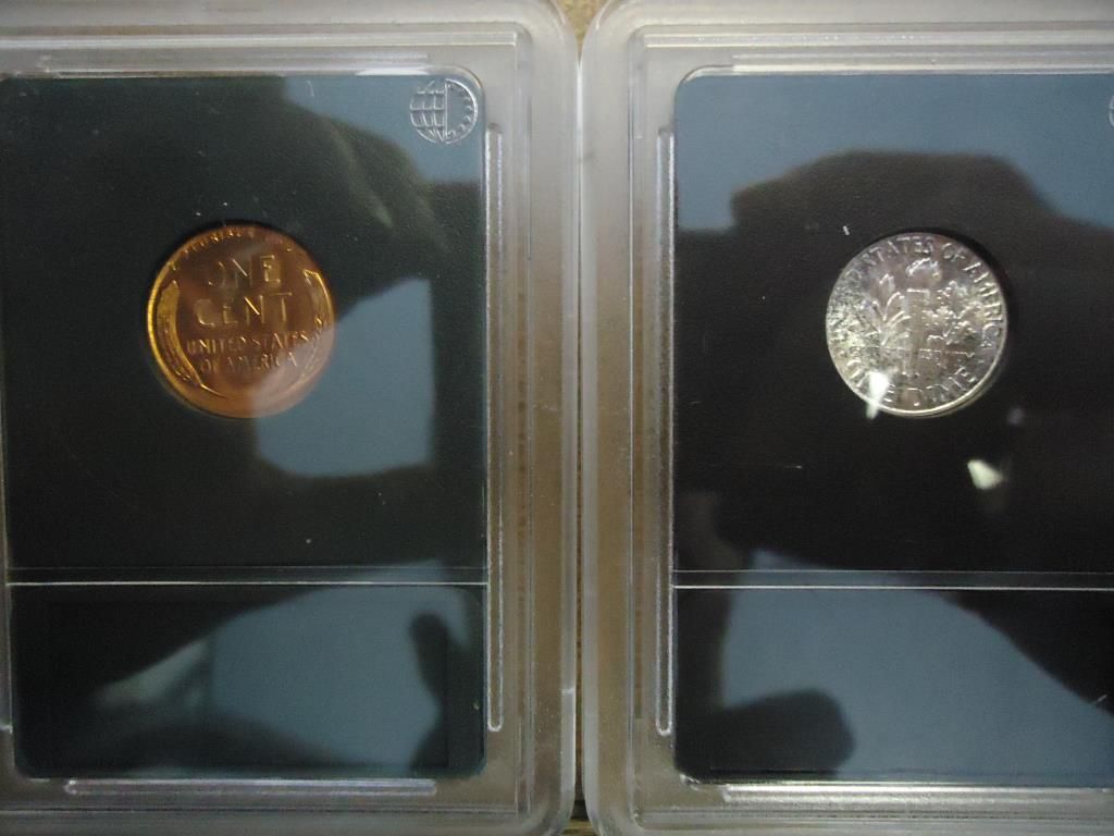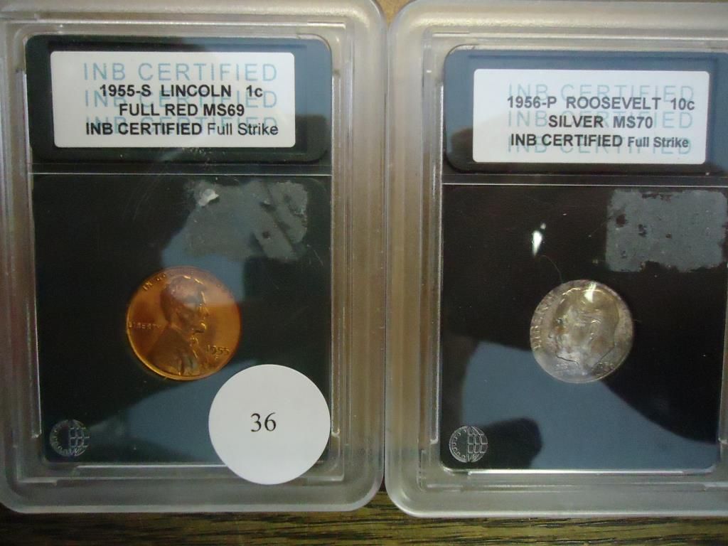 1955-S LINCOLN CENT MS69 FULL RED AND 1956 SILVER ROOSEVELT DIME MS 70