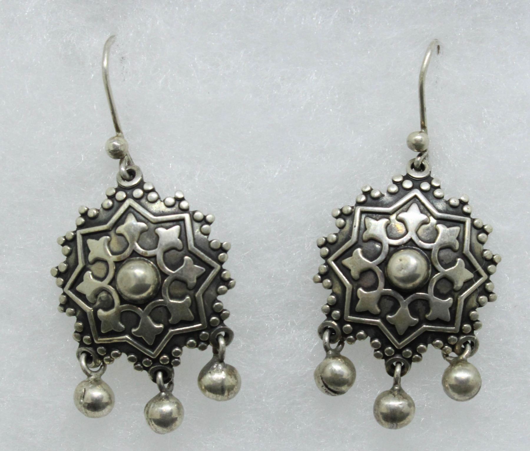 HALLMARKED SILVER EARRINGS WITH MIDDLE-EASTERN PATTERN.