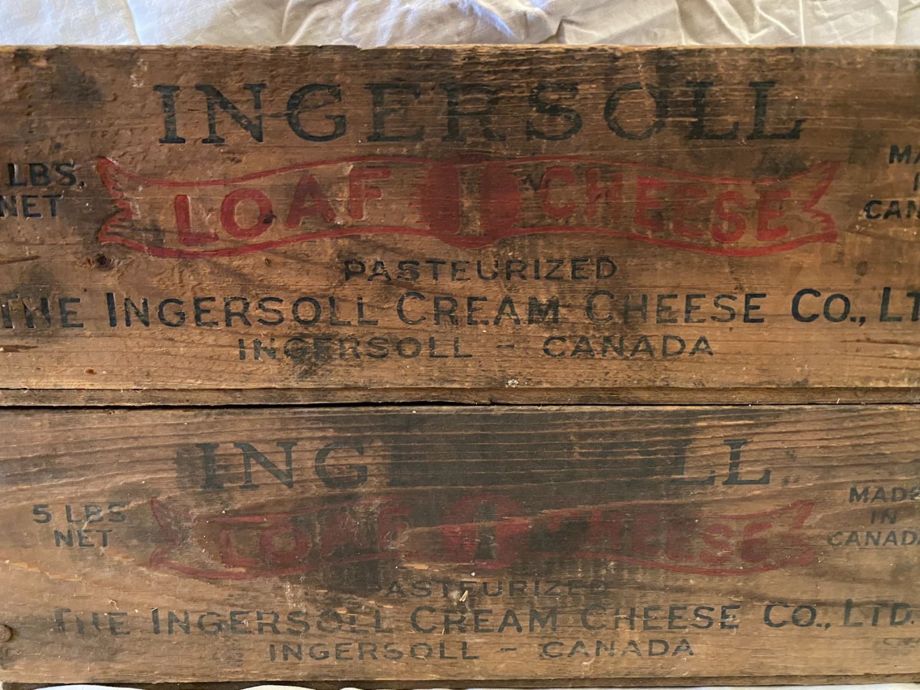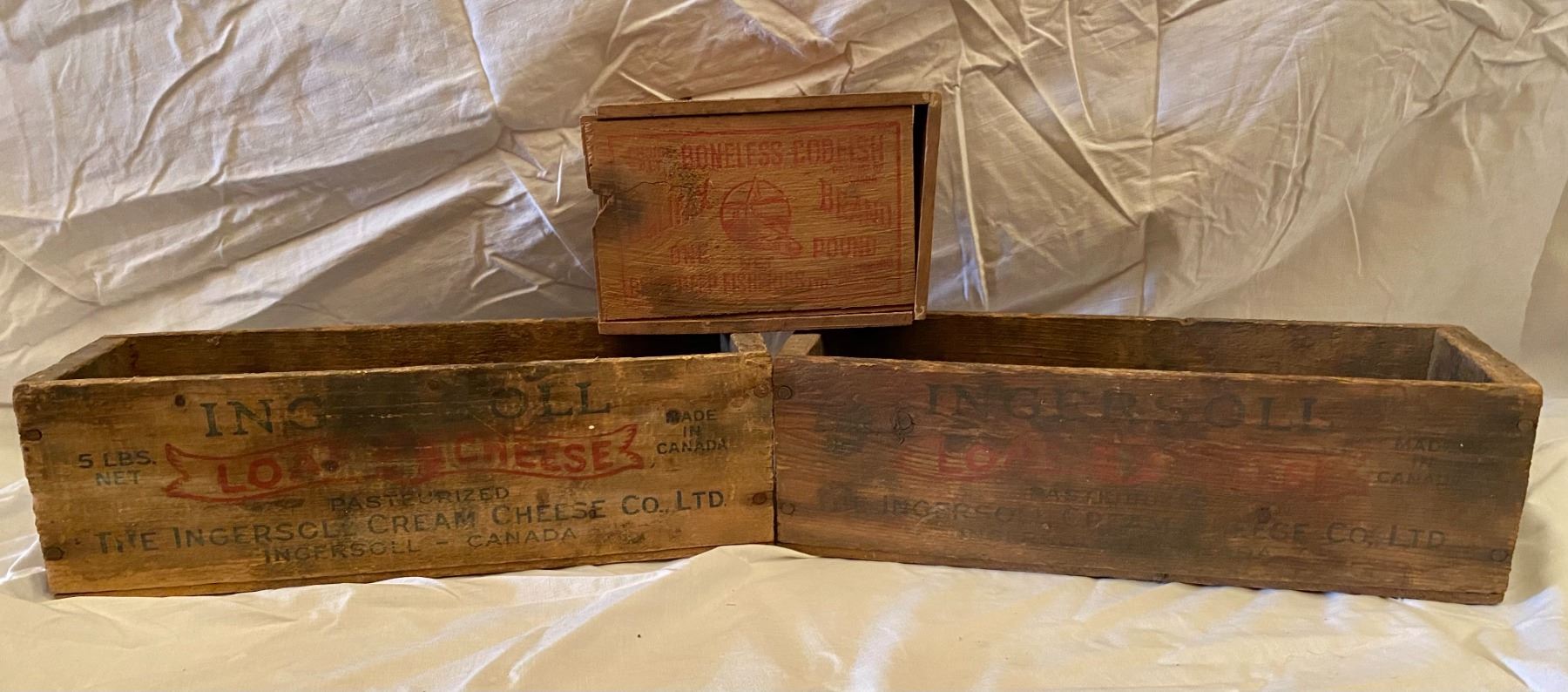 2 INGERSOLL CREAM CHEESE BOXES & 1 HALIFAX CODFISH BOX