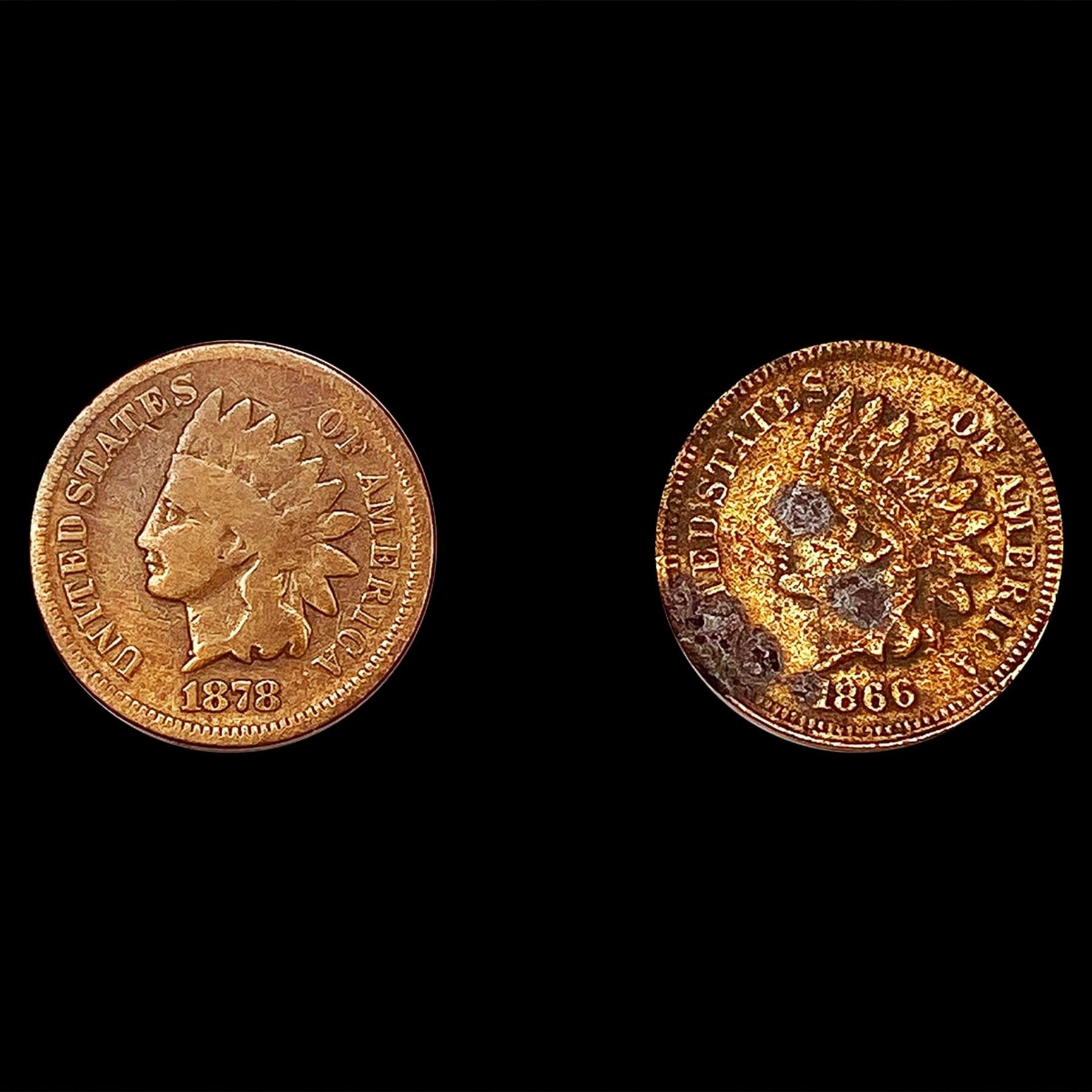 (2) Indian Head Cents (1866, 1878) NICELY CIRCULA