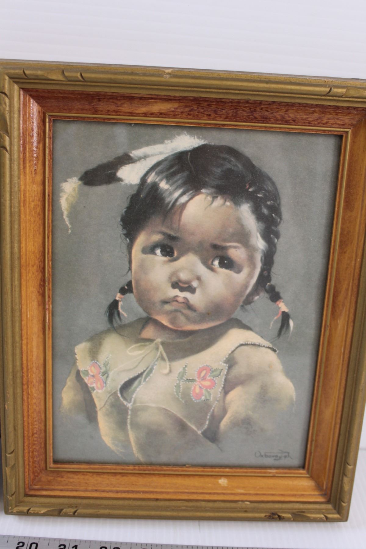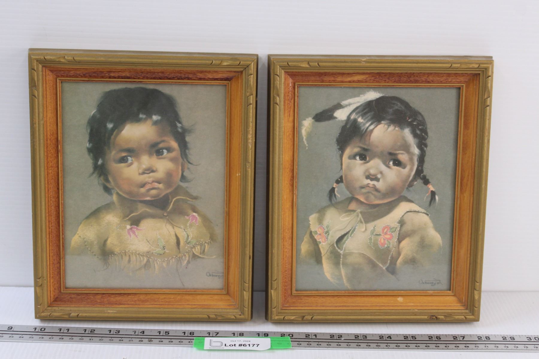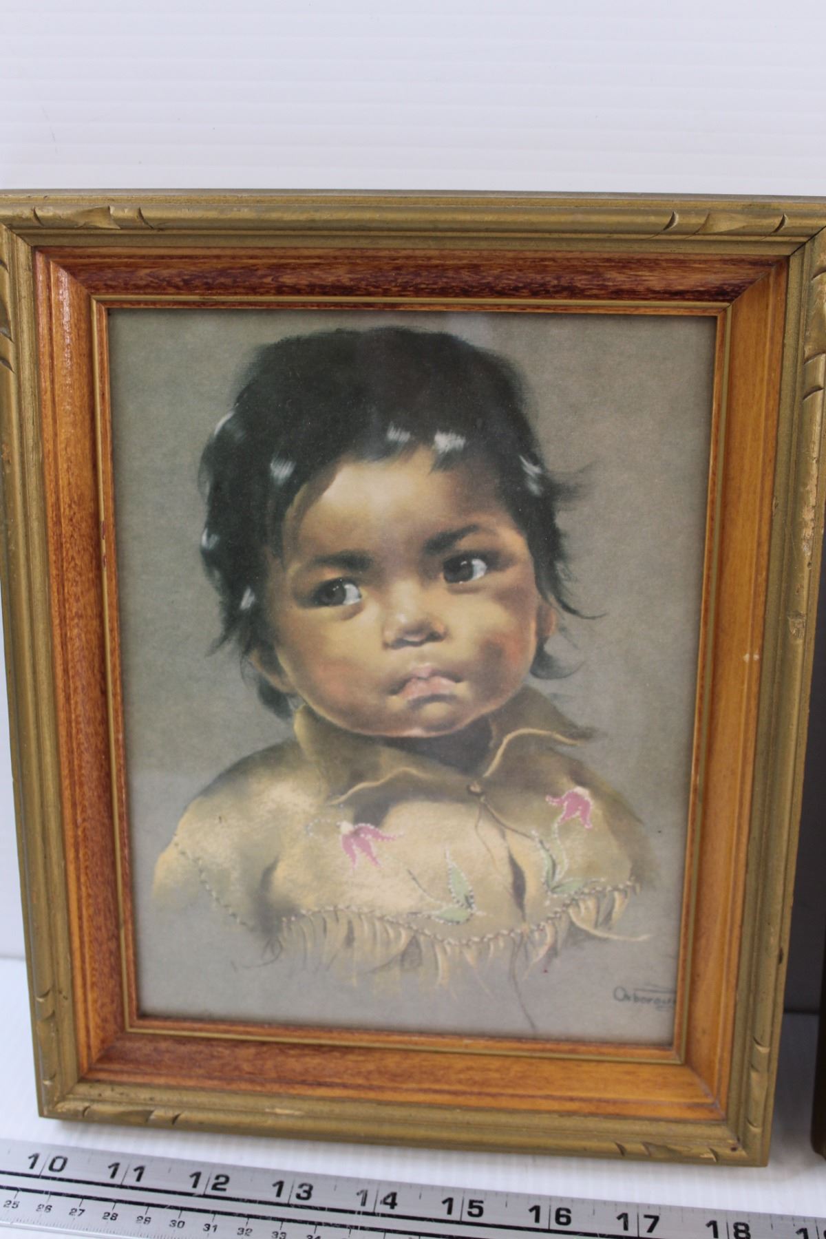 (2) Indigenous Children's Portraits in Wood Frames - 11" x 9"