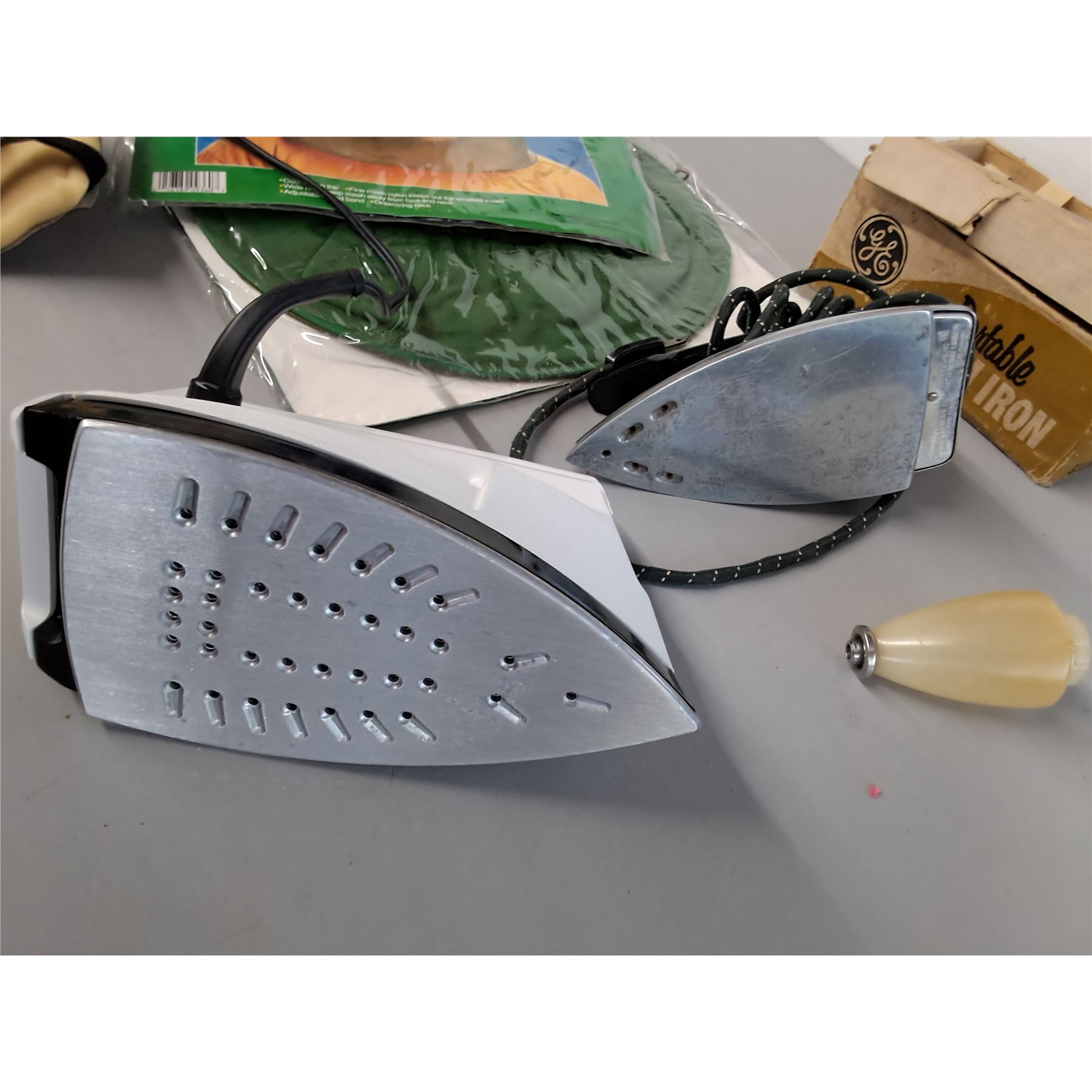 (2) Irons- Power On, (2) Mosquito Head Nets, Kneepads, Misc.