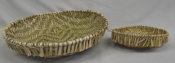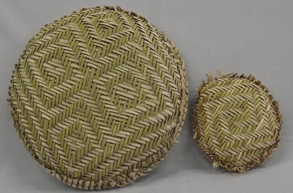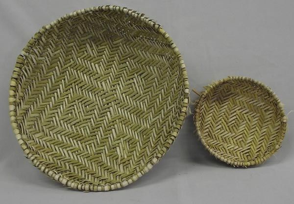 2 Native American Isleta Pueblo Sifter Baskets. Largest basket measures approx. 12.5'' diameter.
