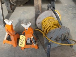 2 JACK STANDS, EXTENSION CORD ON REEL