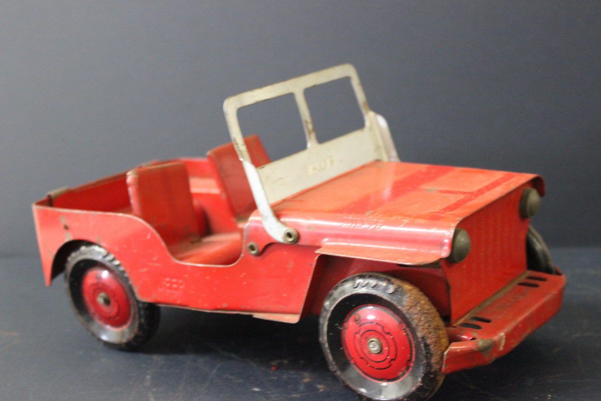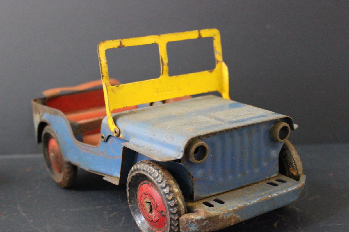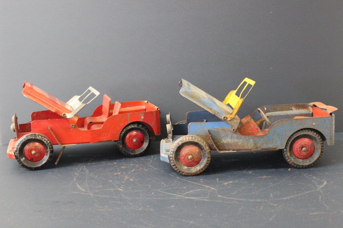 2 JEEPS - BLUE NEEDS HEADLIGHTS - RED NEEDS STEARING WHEEL