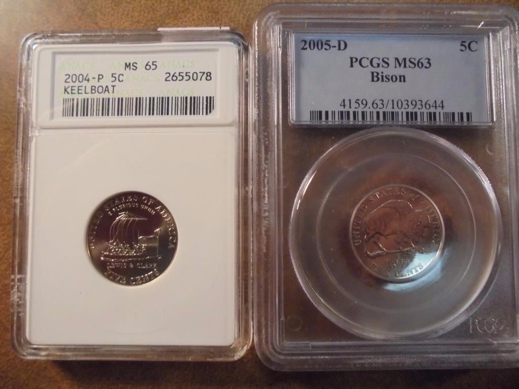 2004-P KEELBOAT ANACS MS65 AND 2005-D BISON PCGS MS63