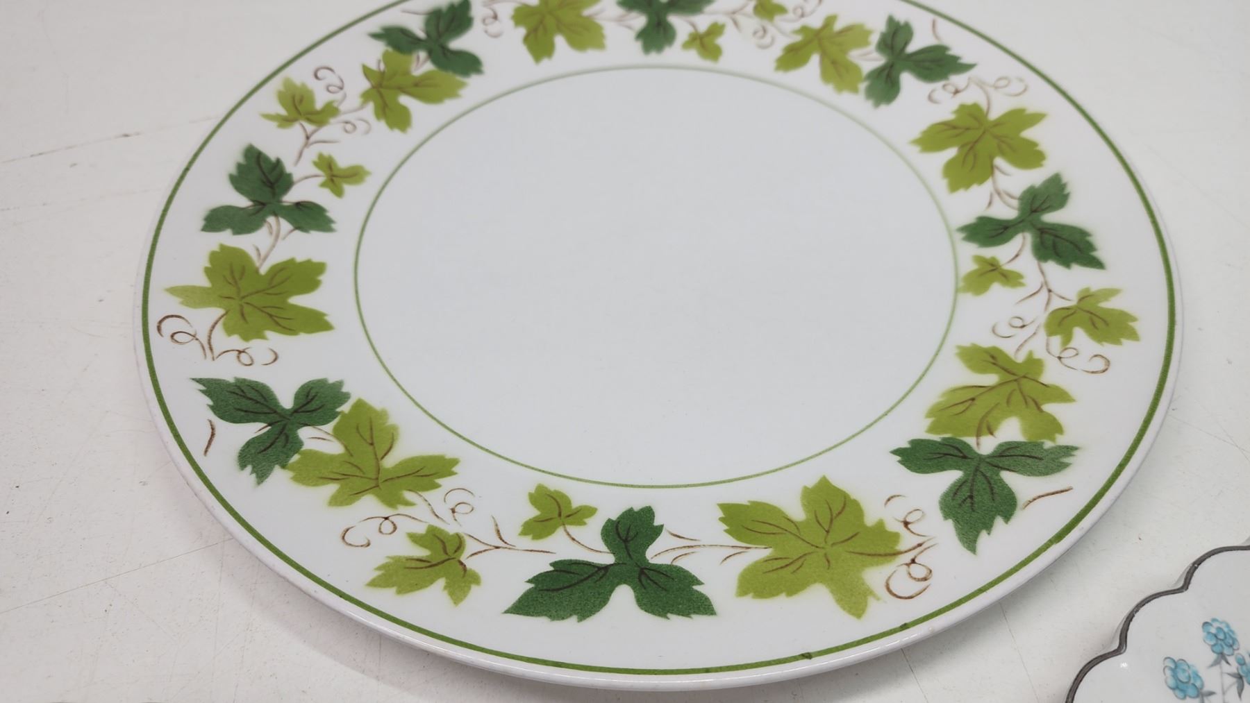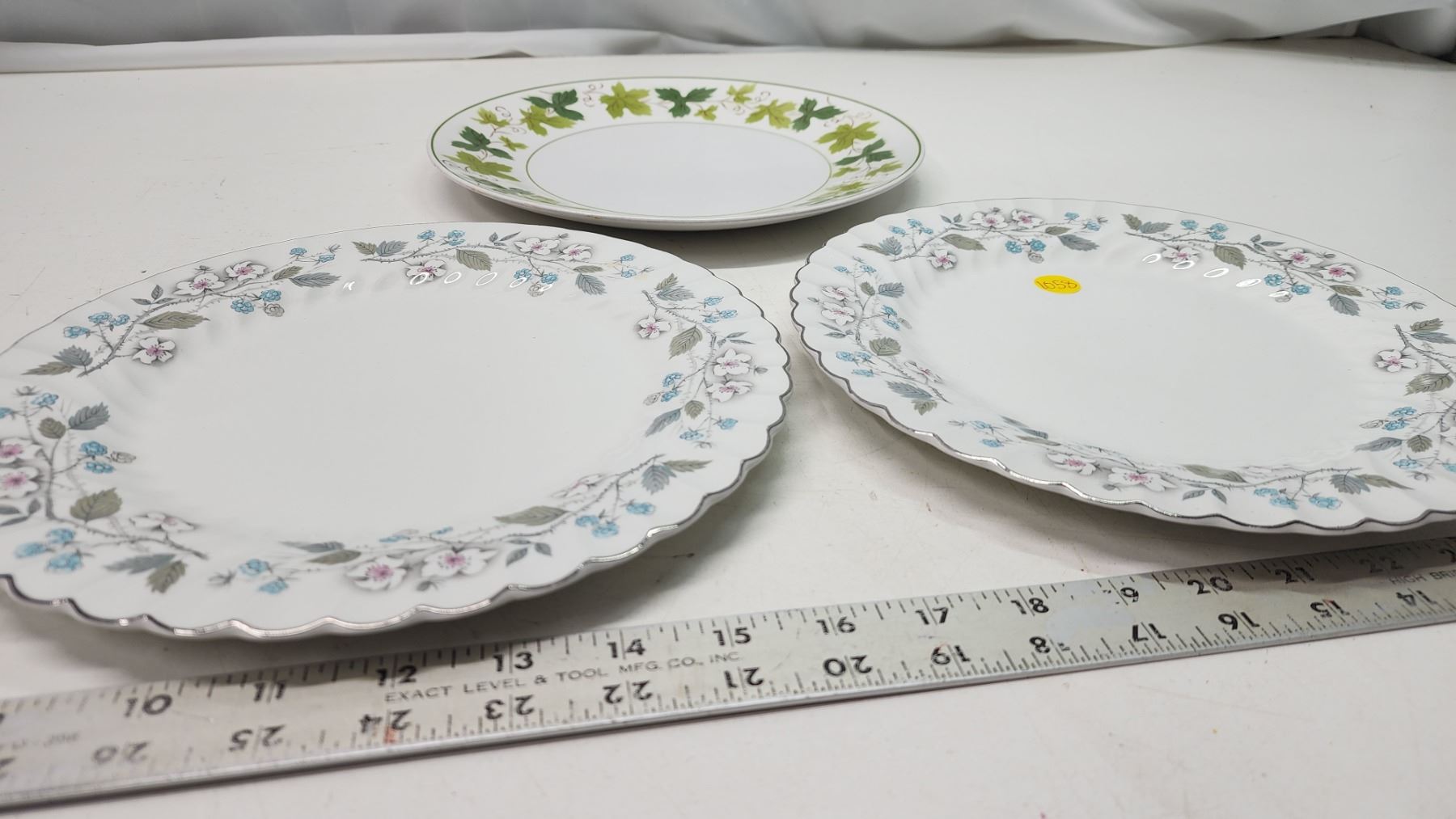2 JOHNSON BROS. IRONSTONE DINNER PLATES “Snowhite” Regency. And 1 MIKASA CERVA-STONE “Greenfield” dinner plate.