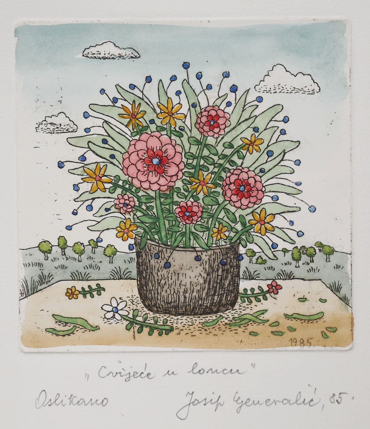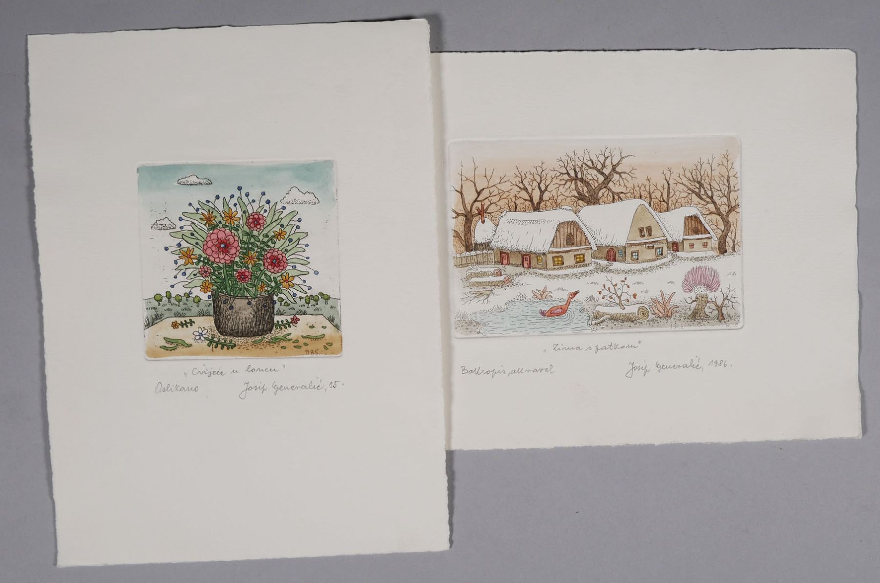 Group of two hand colored etchings by Josip Generalic (Croatian, 1936-2004). Each pencil signed and dated to 1974. Sheet size is 8" x 10 1/2". Excellent condition.