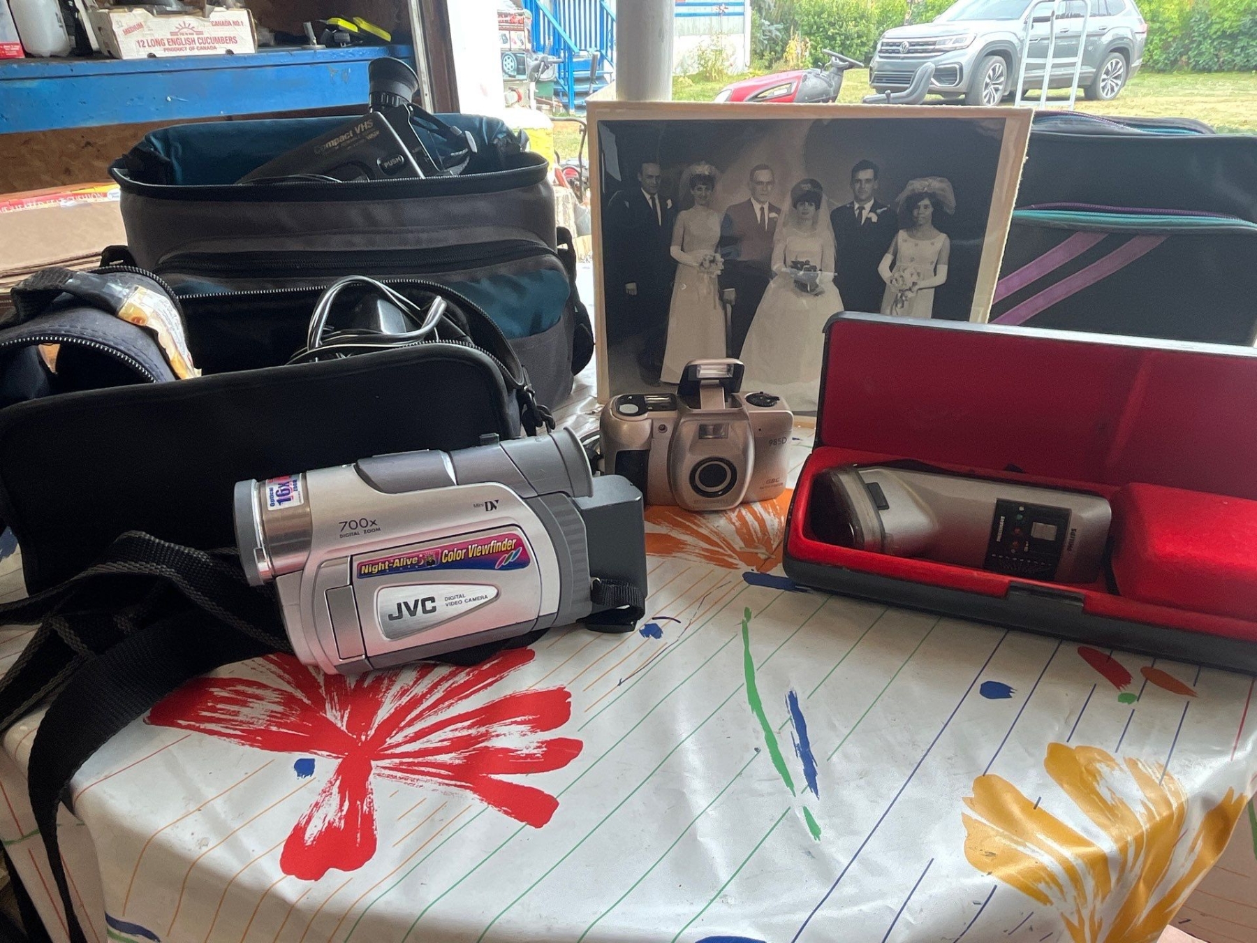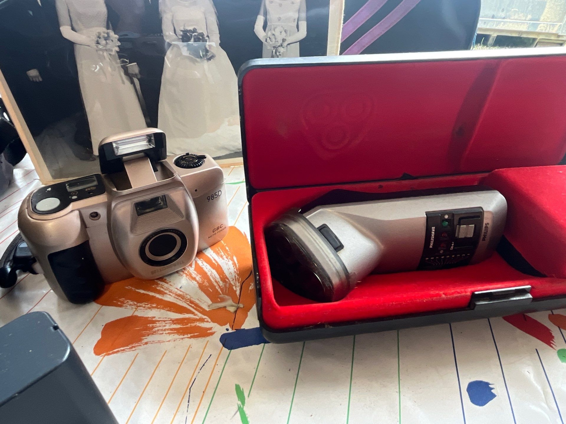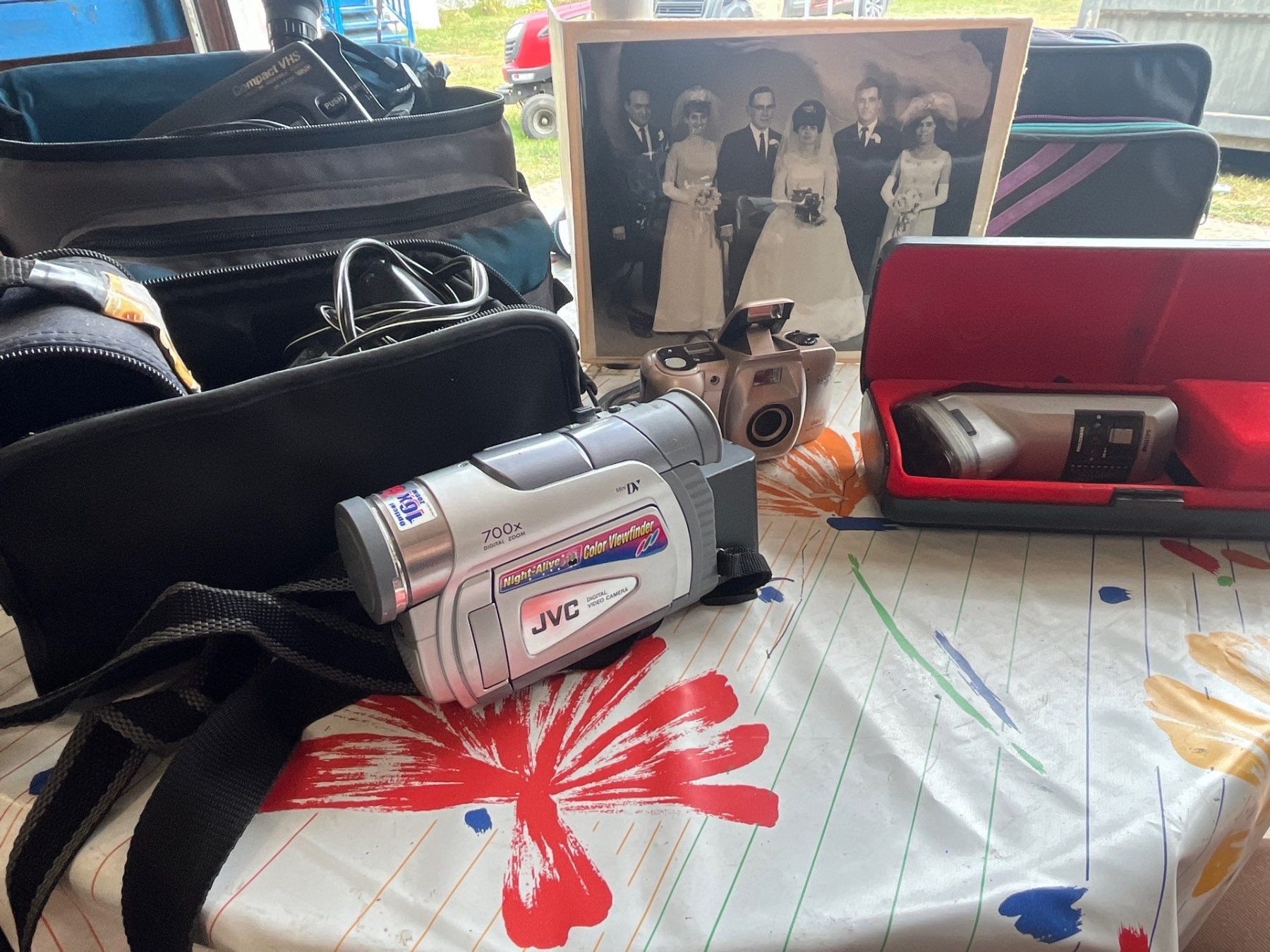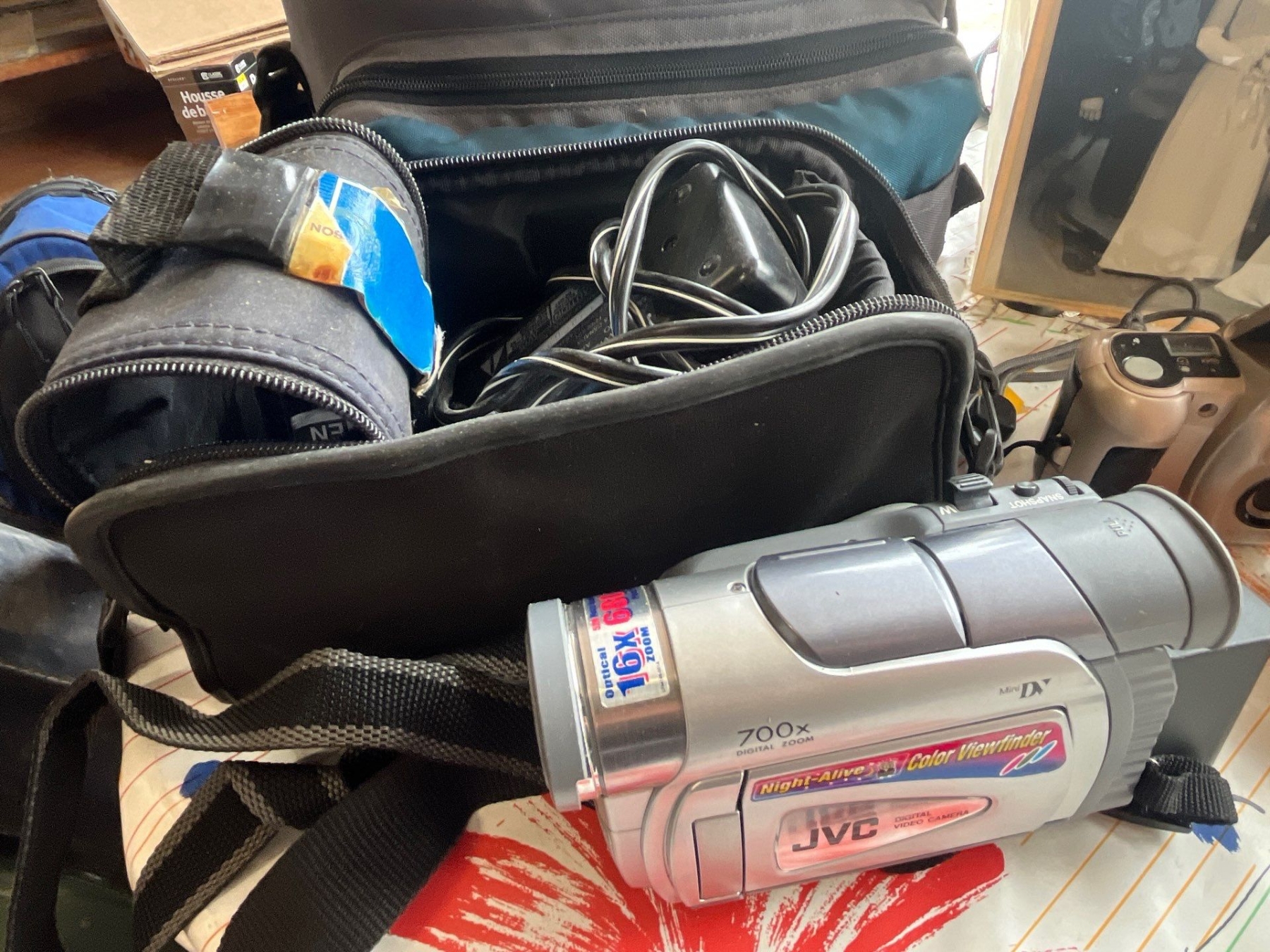 2 JVC VHS, recorders with chargers, a Phillips vintage razor with charger and a digital camera including all bags and vintage photo