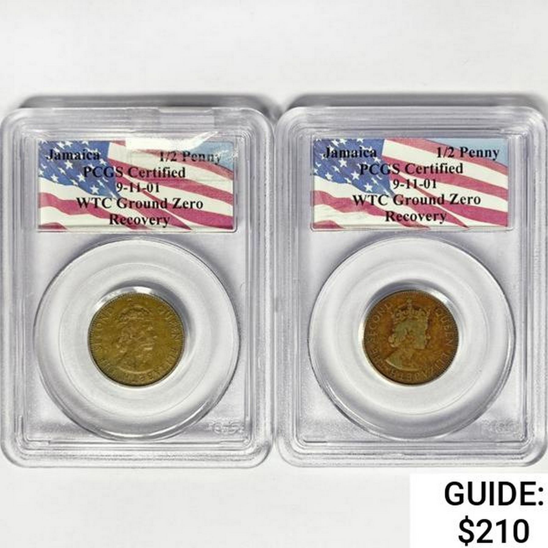 [2] Jamaica 1/2 Pennies (1957, 1963) PCGS 9/11 WTC Recov