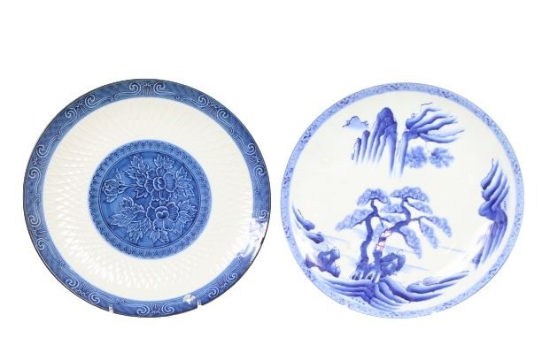 Japanese blue and white porcelain plates.