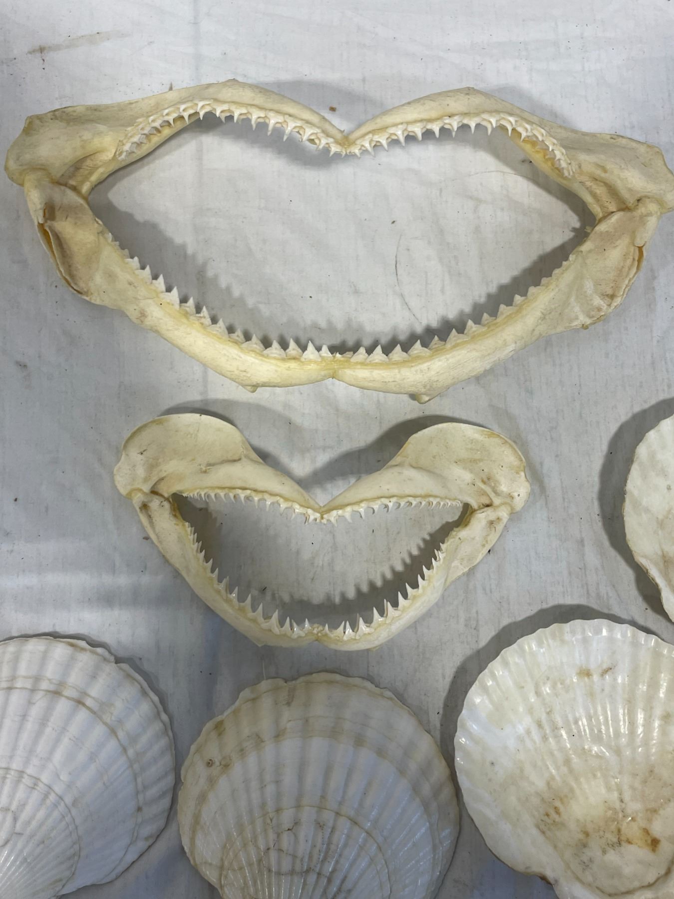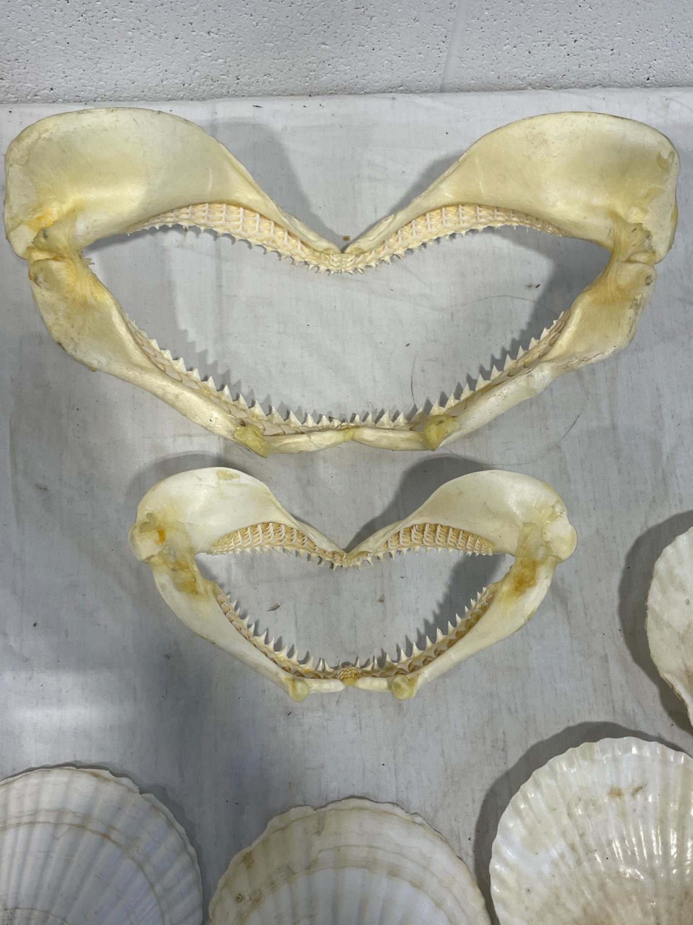 Bigger jaw is 13 1/2" wide x 7 tall - Smaller jaw is 8" wide x 5" tall