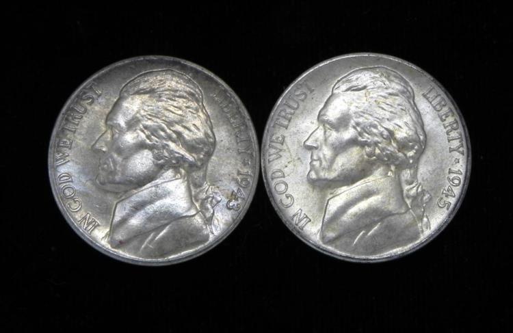 Available are 2 Jefferson Silver Gem Uncirculated War Nickels. They are a 1943-D and a 1945-D.