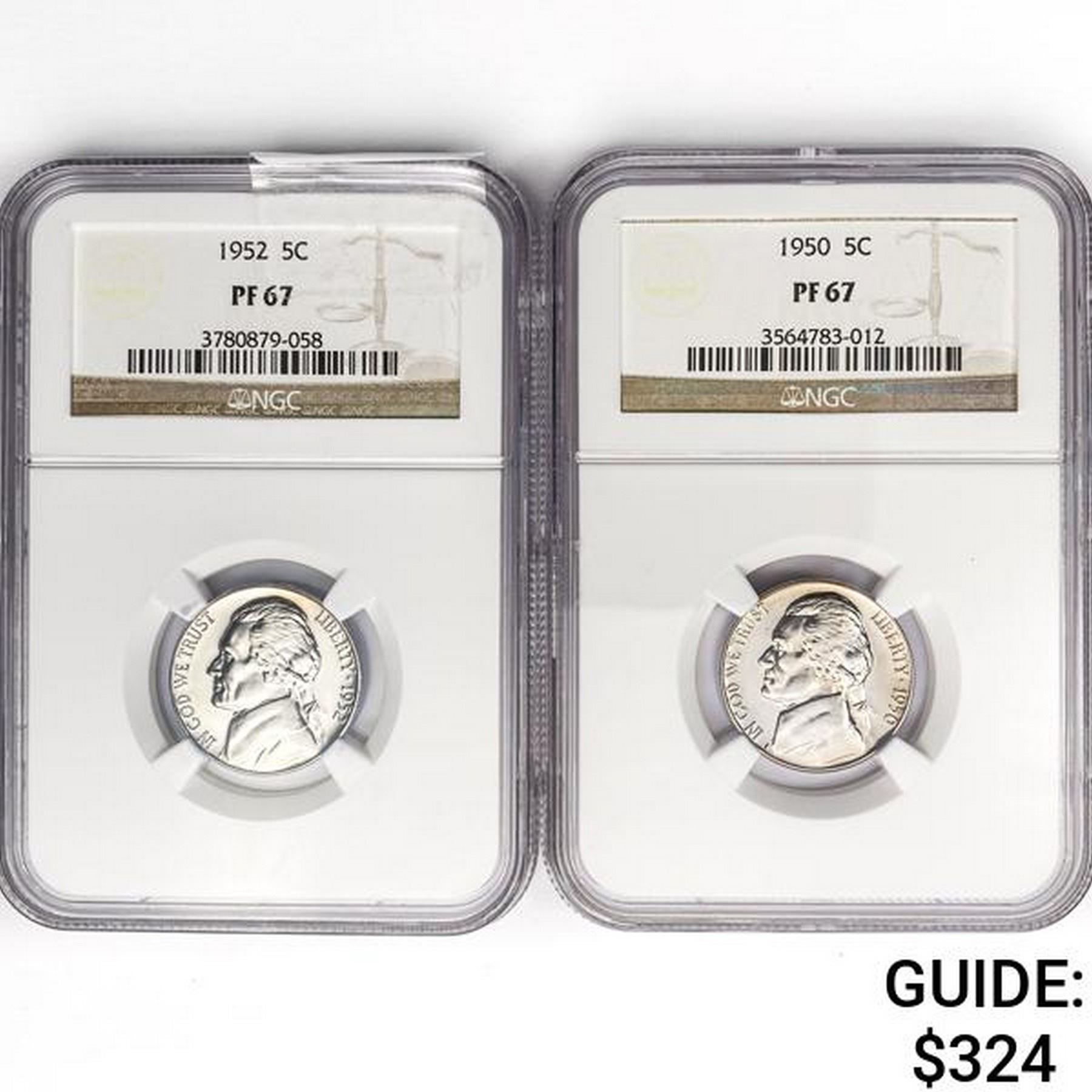 (2) Jefferson Silver Nickles NGC PF67 1950-1952