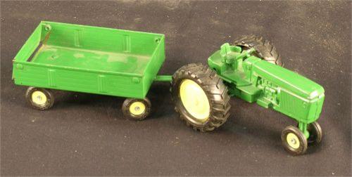 John Deere tractor rmodel with cab 1/16 scale and smaller John Deere Tractor and Wagon model