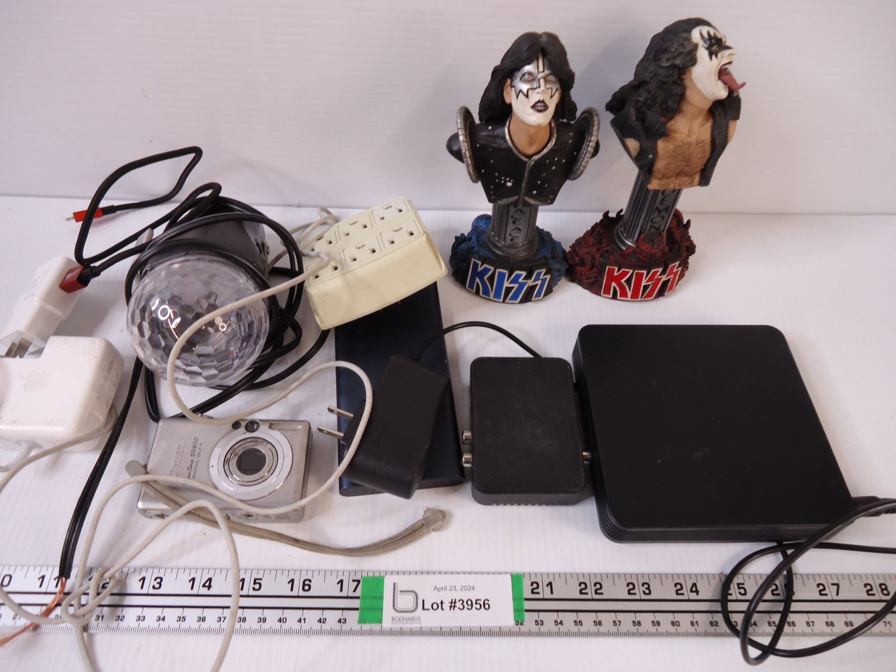 (2) KISS Figurines, Modem, Chargers, Camera, Light