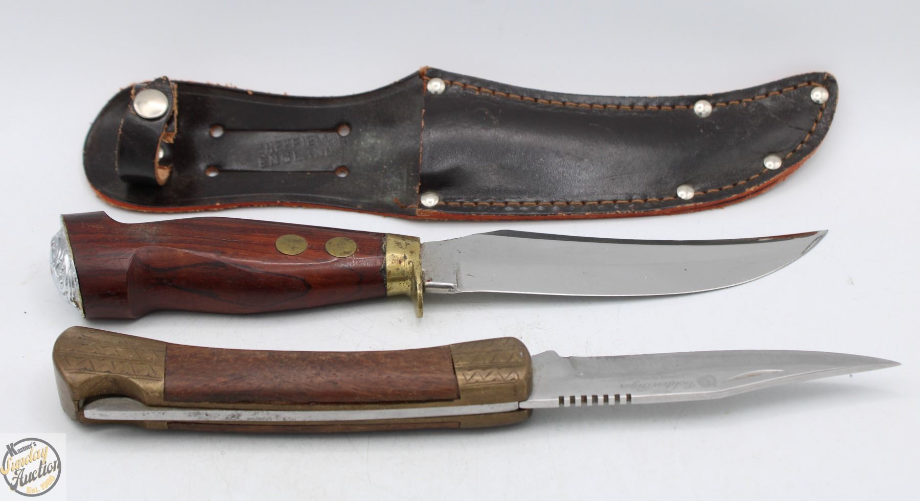 2 KNIVES (1 WITH LEATHER SHEATH)