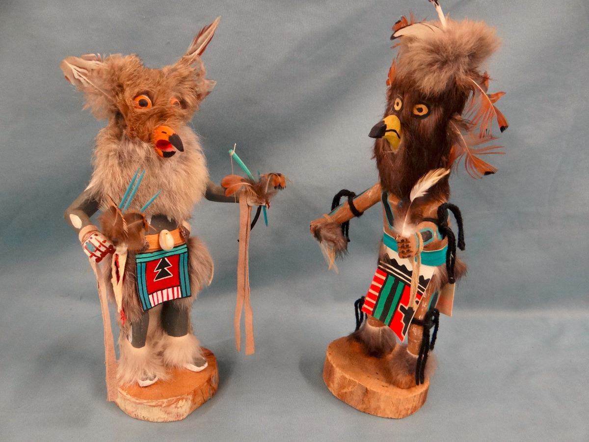 2 Kachina dolls: "Grey Owl" signed B. Begay, 10-1/2"h (Navajo); AND "Owl" 12"h (Navajo)