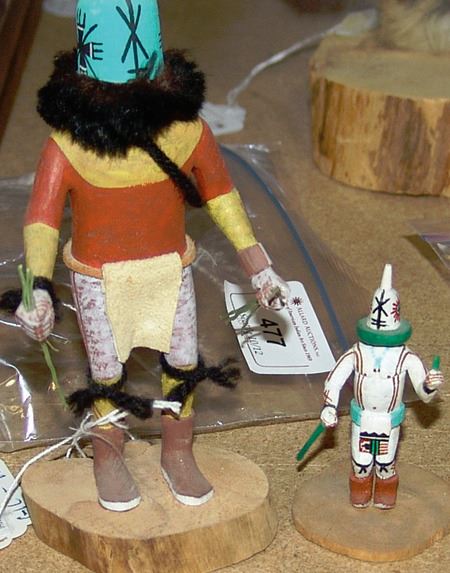 Mid/Late 1900s, A pair of small Hopi kachina dolls. One very fine. Larger 5-1/2" x 3"