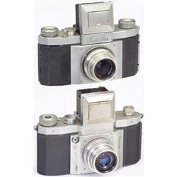 Kamera-Werkstätten, Dresden: 1) "Praktiflex", 1939, Nr. 1.511, chrom, umgebaut auf M 42, Zeiss Tessar 4,5/40, Nr. 3.764.434. - Early Praktiflex, but converted to M 42 mount, with rare Tessar 4,5/40. (3/3) - Und: 2) "Praktiflex", 1947, Nr. 47.665, M 40, Auslöser vorne, Tessar 2,8/5 cm, (4/3). - € 200/250 - (126/10)