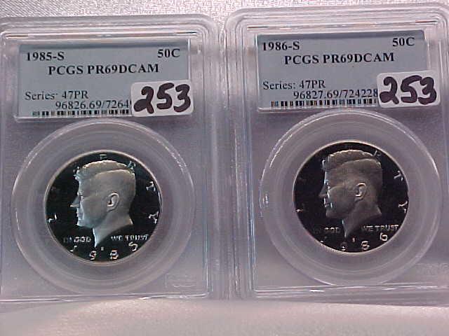 2 Kennedy Half $ both PCGS PR69 DCAM: 1985S, 1986S