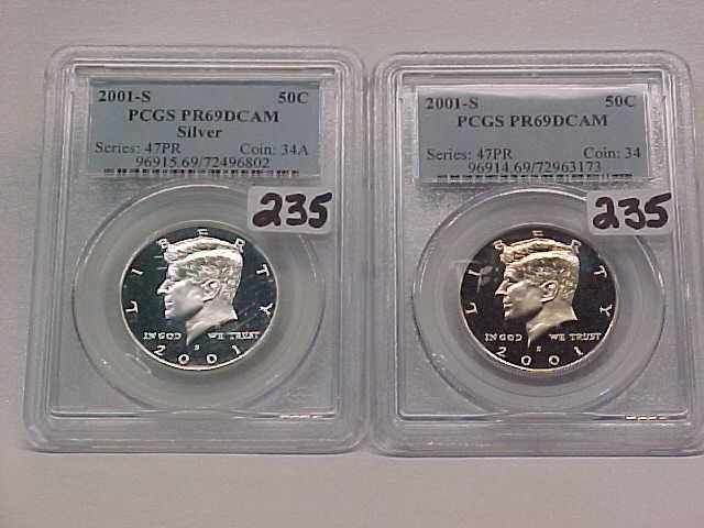 2 Kennedy Half $ both PCGS PR69 DCAM: 2001S, 2001S Silver