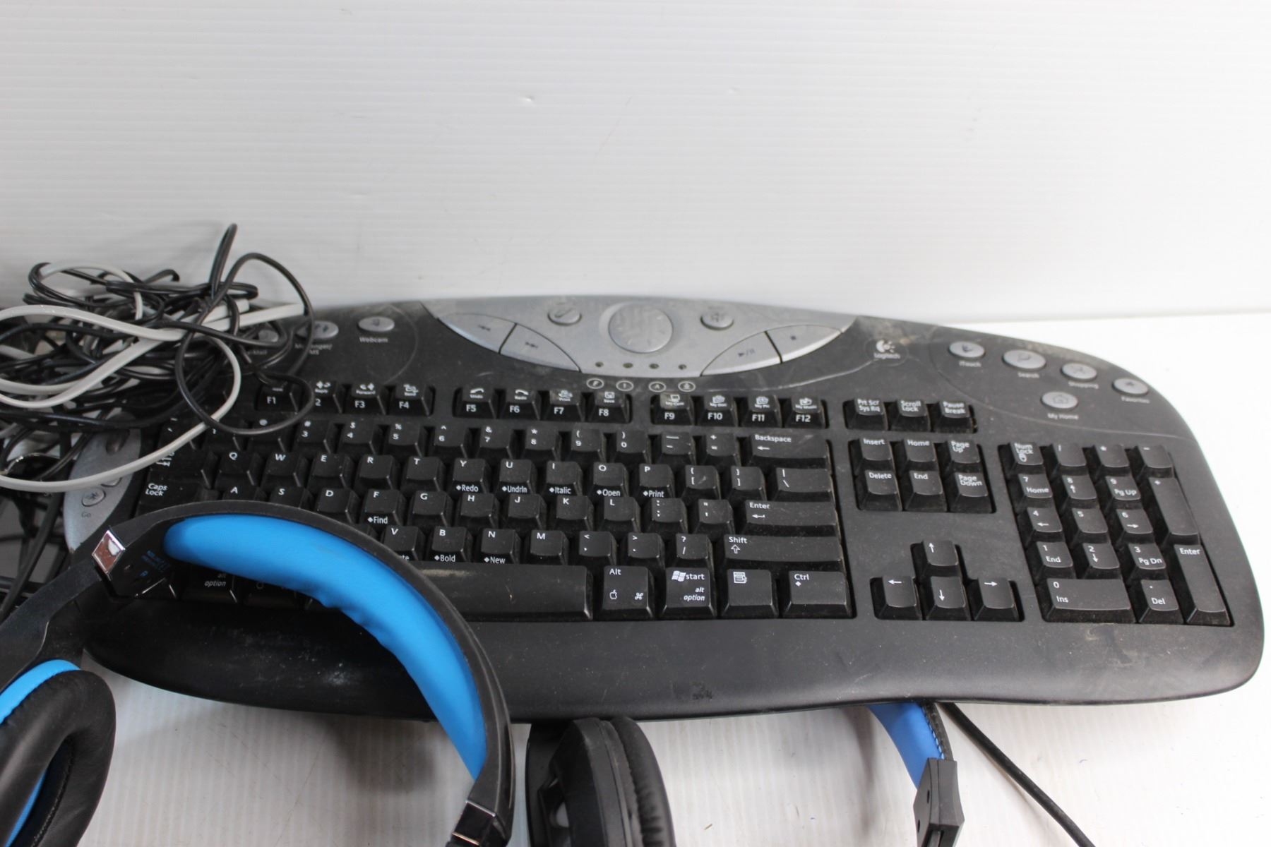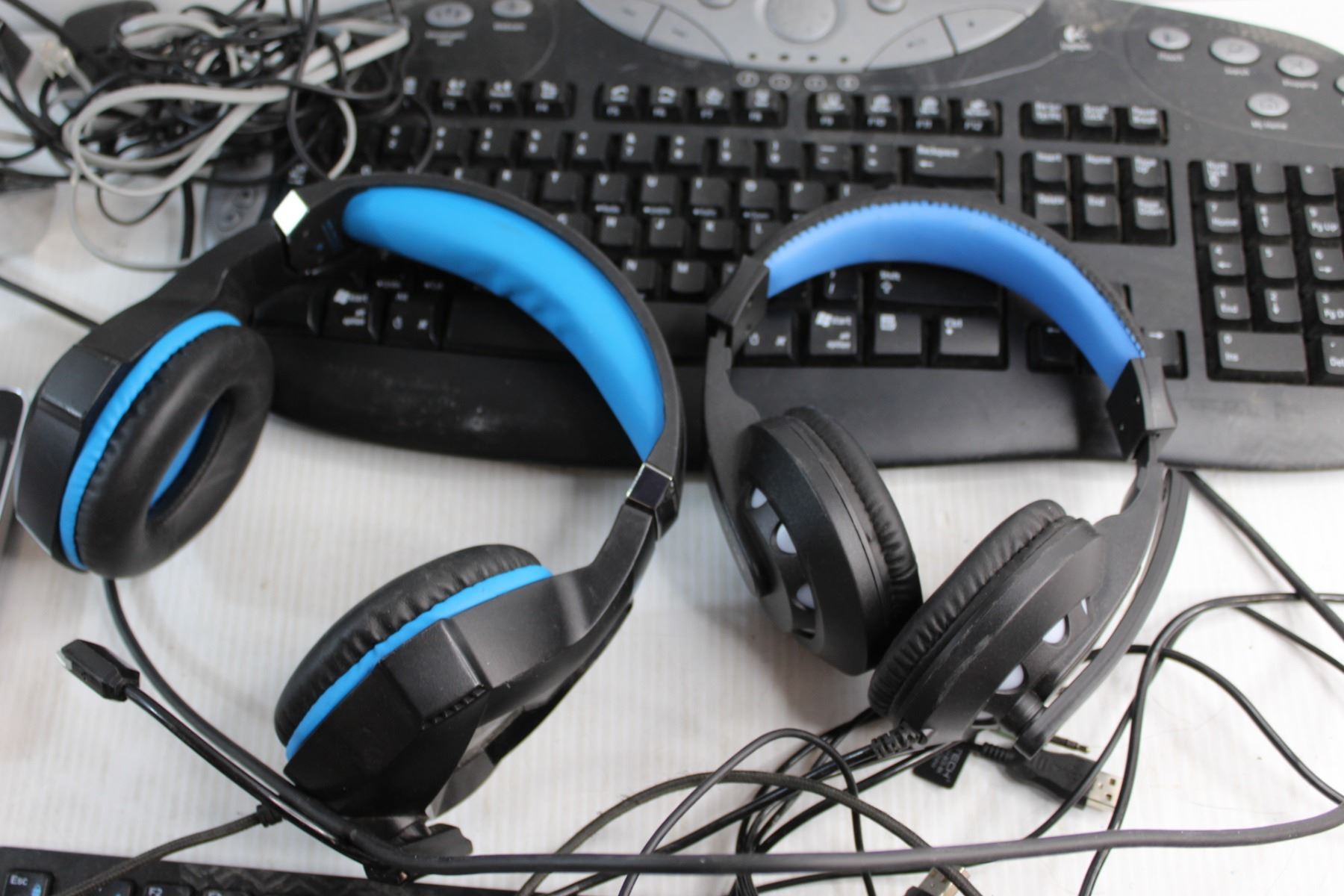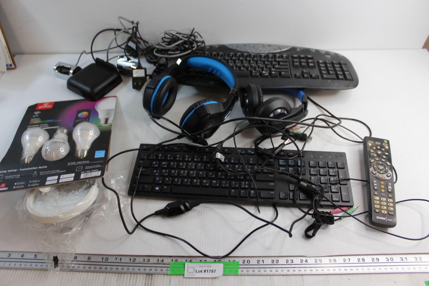*(2) Keyboards, (2) Headsets, Tunable White Lightbulbs and Assorted Items