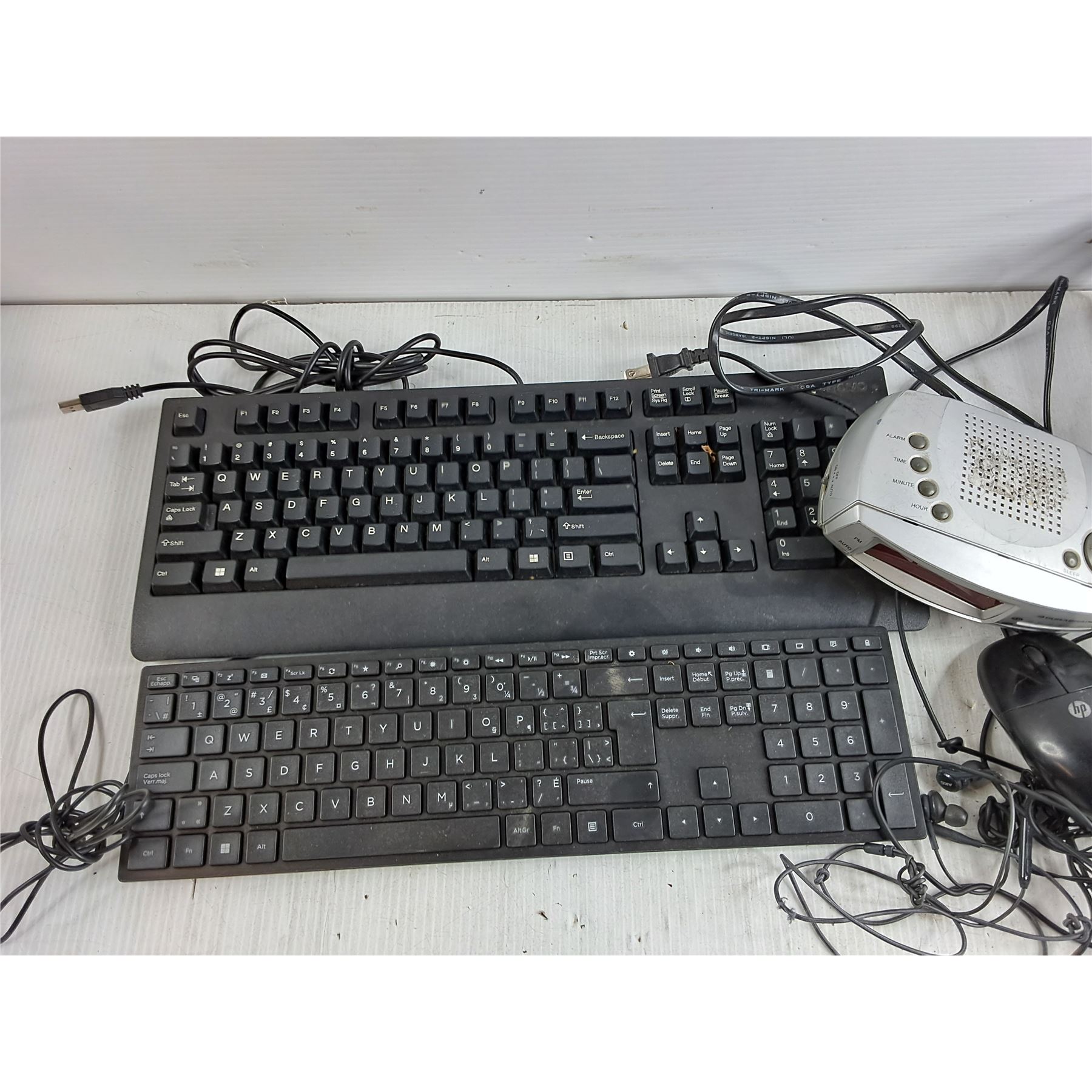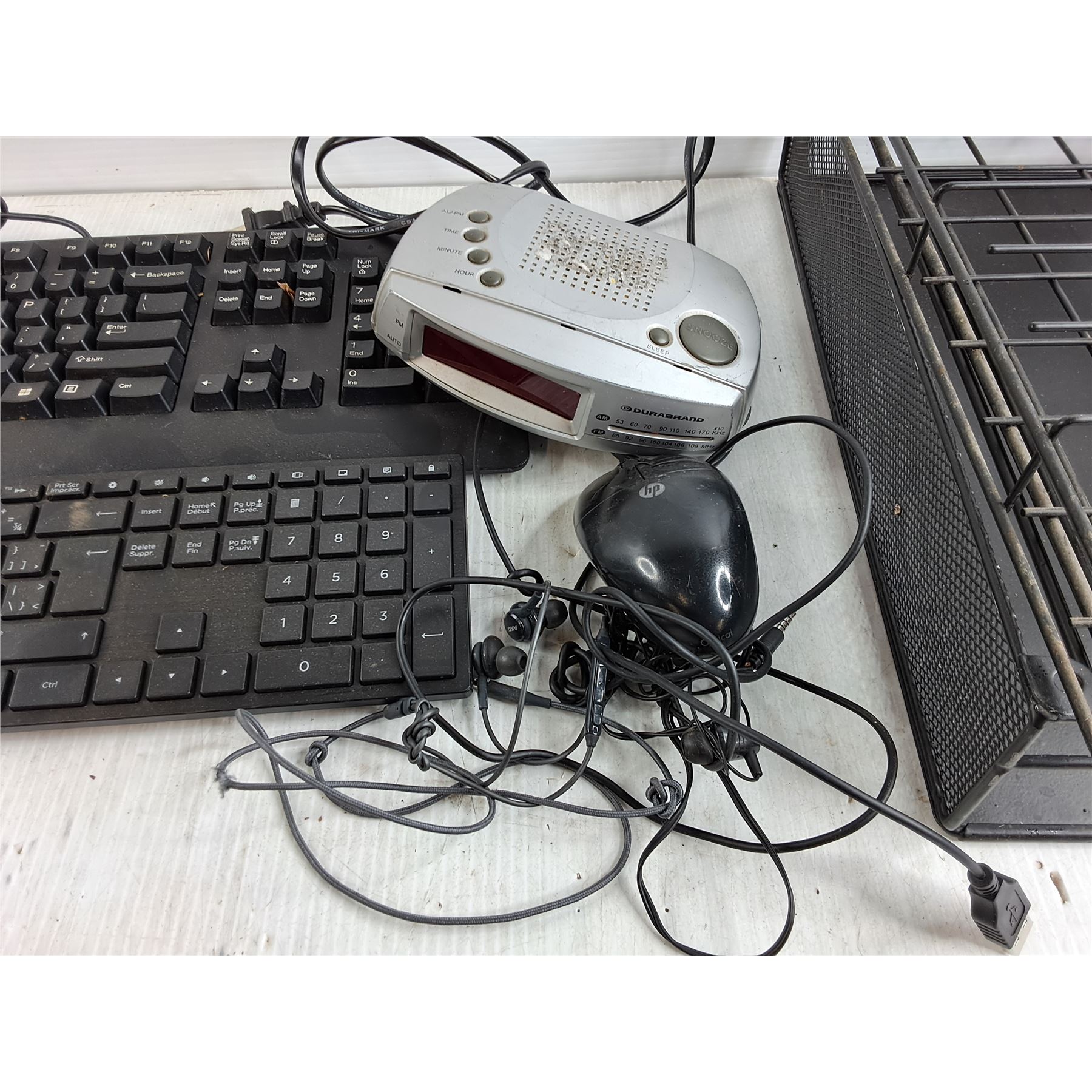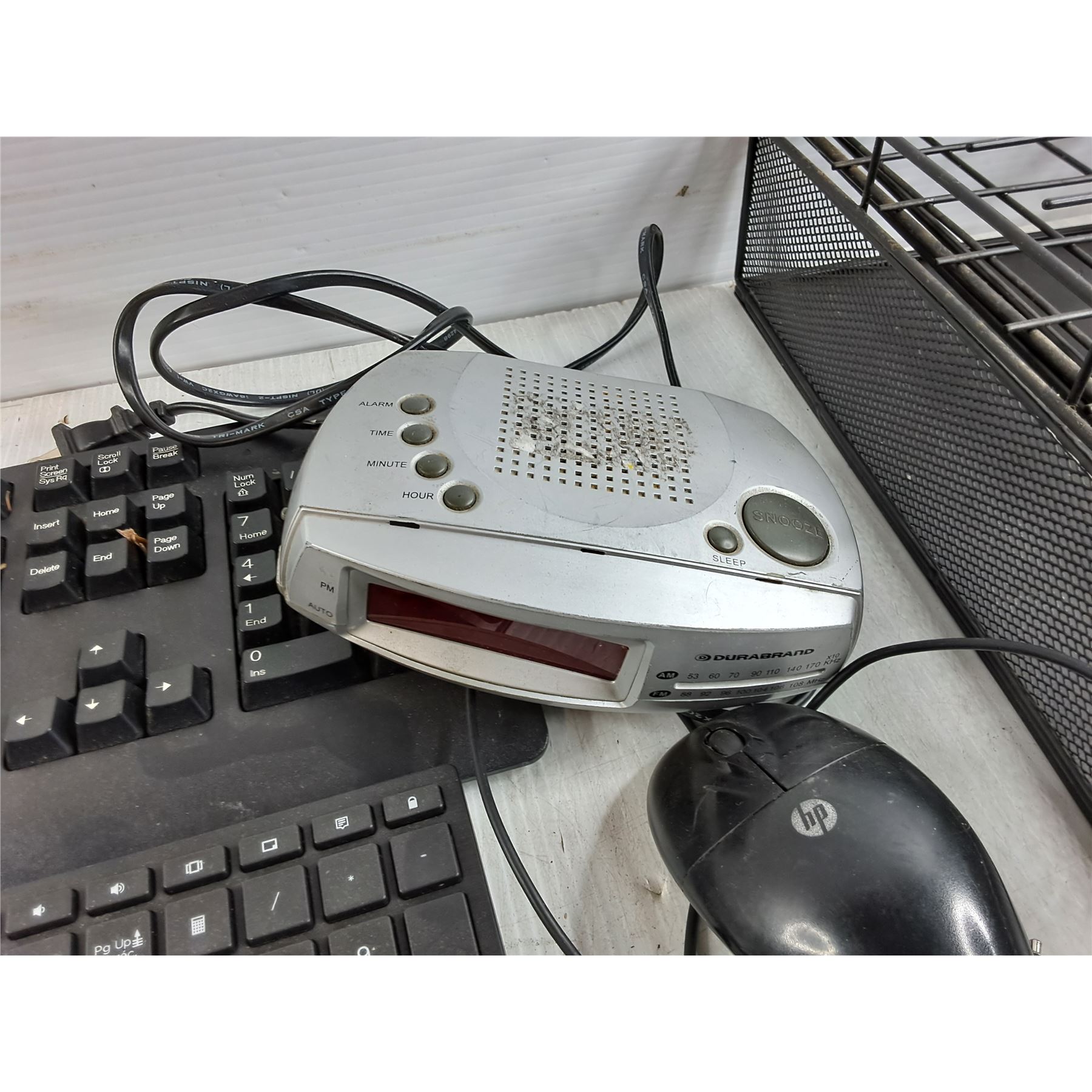 (2) Keyboards, Durabrand Radio Alarm, Computer Mouse, Headphones, File Organizer, As Is