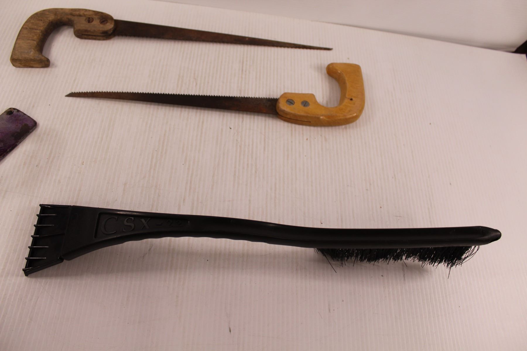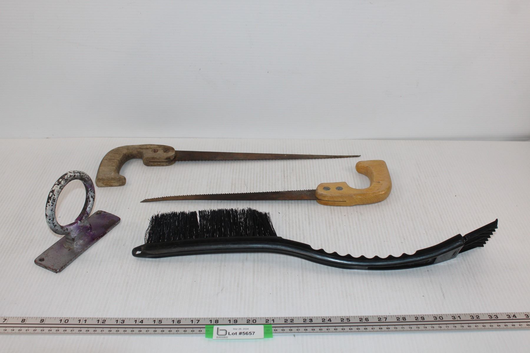 (2) Keyhole Saw's, Welded Rig Hanger & Snow Brush