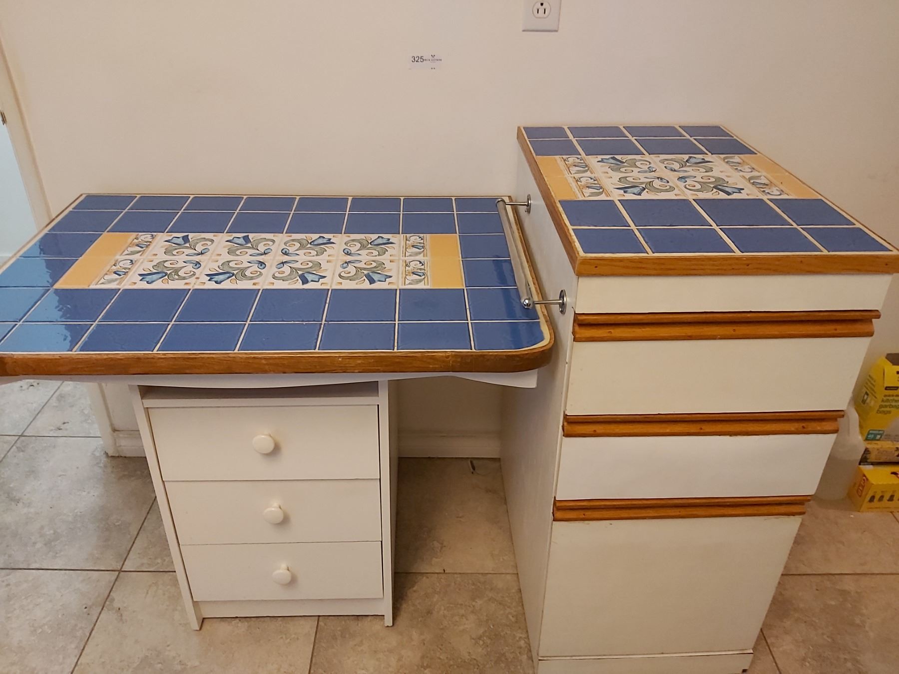 2 Kitchen Islands on Wheels with Mosaic Tops