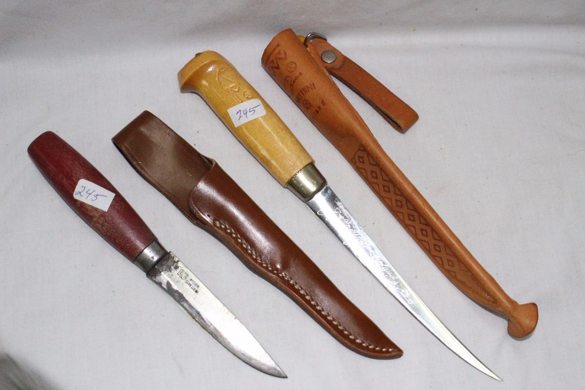 2 Knives: 1 Fillet, 1 Hunting with Wood Handle and Sheaths