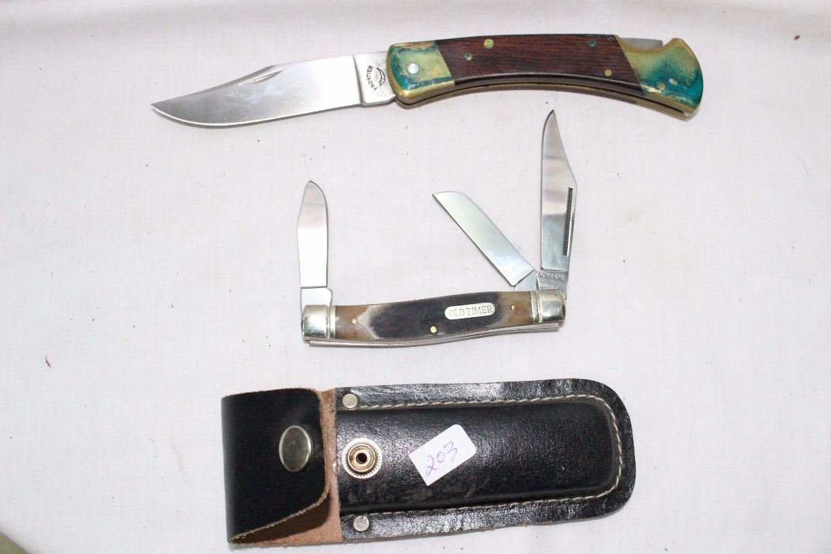 2 Knives: 1 SCHRADE Old Timer 1 FRONTIER 4815 Lockblade with Sheath