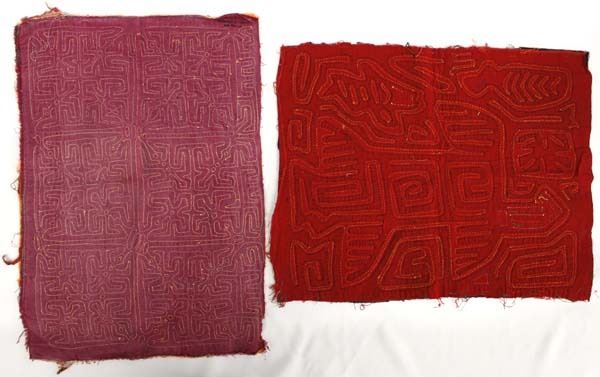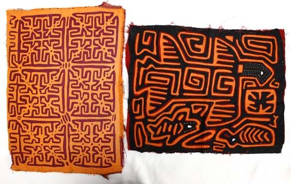 2 Kuna Indian Molas, largest measures 18'' x 13'', FYI: ''The Kuna Indians are a strongly-knit tribal society living on a chain of islands called San Blas Archipelago, on the Atlantic side of the Republic of Panama. The Mola, or Molas, is a hand-made textile that forms part of the traditional women's clothing of the Kuna people from Panam .''