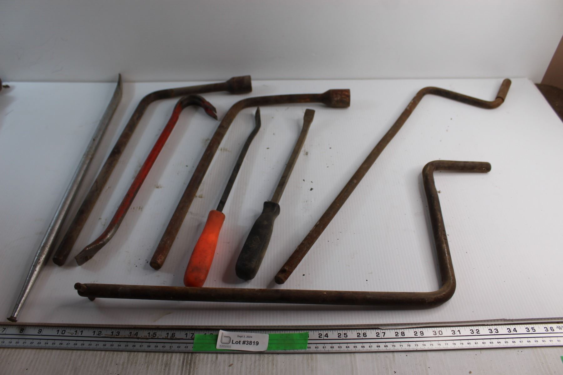 (2) L Hex Socket Wrenches, Crowbar, (3) Tire Mounts and (2) Crank Handles