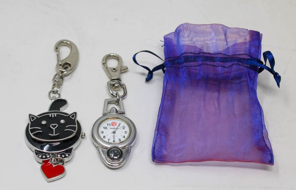 2 LAPEL CLIP WATCHES , RUNS, COMPASS ON ONE
