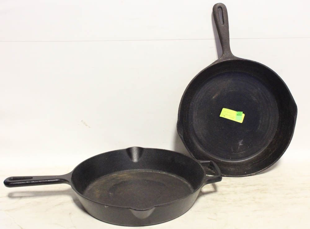 2 LARGE CAST IRON FRY PANS TOGETHER